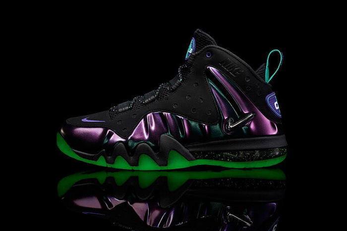 继在 Nike Sportswear 2013 All-Star 全明星赛 “Area 72″ 概念别注系列中亮相后,此番 Barkley Posite Max 以 “Eggplant” 的全新式样重现大家眼前。设计上灵感来自于经典的 Foamposite One,采用 Eggplant Foamposite 结合黑色 Nubuck 皮革与网眼材质打造鞋身,并以搭载有 Max Air 缓冲气垫单元的斑点喷漆中底以及绿色夜光外底加持呈现。这双带有 Foamposite One 血统的 Barkley Posite Max “Eggplant” 已于 3 月 23 日开始于 NSW 各大指定店铺发售,定价为 $235 美元。 |