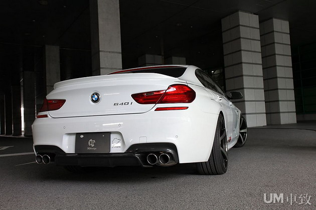 日前,著名改装品牌3D Design发布了全新BMW M6改装计划:F06。F06套件包括含有碳纤维材质的前唇、全碳纤维后扩散器以及尾箱尾翼等等。此外,全新排气系统也在开发中。套件当中,前唇售价2600美元,扩散器售价1875美元,尾箱尾翼880美元。 全新宝马M6代表了宝马当今的最高造诣,采用代号S63的4.4升V8双涡轮增压引擎,相较于旧款引擎,全新的引擎燃油经济性提高了30%。从5750转至7000转可以爆发出560匹的最大马力,而峰值扭矩为678N.m,并且可在1500转持续到5750转。
