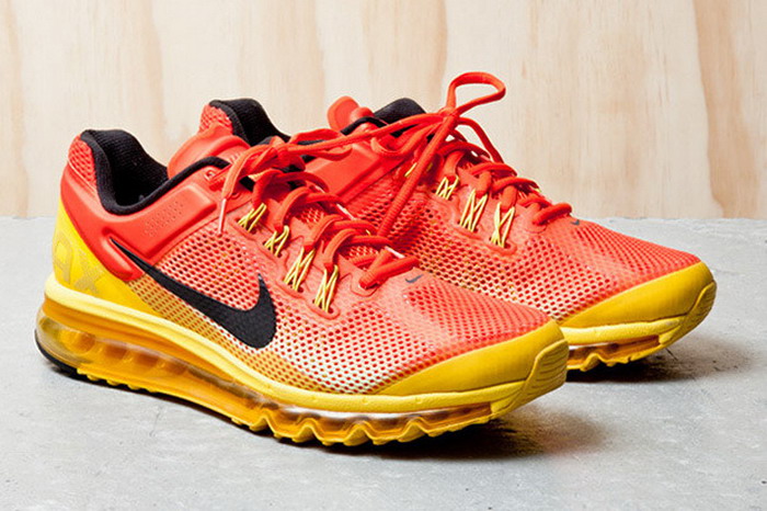 作为 Air Max 家族的最新成员, Nike Air Max+ 2013 以轻量的透气网眼材料替代了前辈所普遍采用的尼龍、皮革的物料,并拥有可视设计的全掌 Max Air 气垫,拥有出色的透气性能与脚感。而此番 Nike 为 Air Max+ 2013 鞋款推出了 “Sunrise” 日落配色,应用渐变橙的 EM 工程网眼 Hyperfuse 材质与日落黄色的后跟、外底打造,并配以 Flywire 动态贴合技术与缓震性良好的气垫单元。这款 Nike Air Max+ 2013 “Sunrise” 现可在品牌英国官网购得,定价 130 英镑。