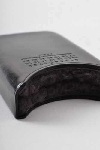 比利时的解构主义设计品牌Maison Martin Margiela,以数字作为品牌系列的分类依据,本季推出Maison Martin Margiela 11的手机保护皮套,以上下盖的黑色皮革为选则,内裡则以毛料材质保护心爱的手机,而MMM的低调作风也用皮革刻痕表现品牌字样,目前已经可以在Por Vocacao购得。