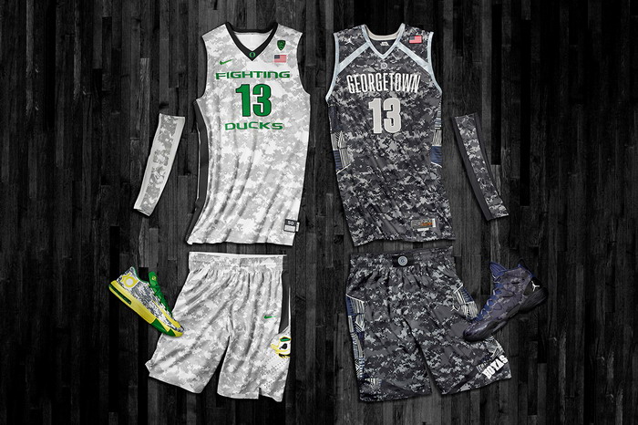 为了奥勒冈州与乔治城的篮球对擂,Nike 最近就与 Jordan Brand 携手合作推出 2013「Armed Forces Classic」系列,对两队球队打造专属装备。今回设计分别以浅灰色与深灰色对立区分,并同样用上数码迷彩图案作主要设计元素,打造了别注版的 Hyperdunk,Nike KD VI 以及 Air Jordan XX8 SE 三款篮球鞋。以上装备将会由两队球队于 United States Army’s Humphries Community Fitness Center 举行的球赛中整装上阵,比赛时间为美国时间 11 月 8 日晚上 8 时。  |