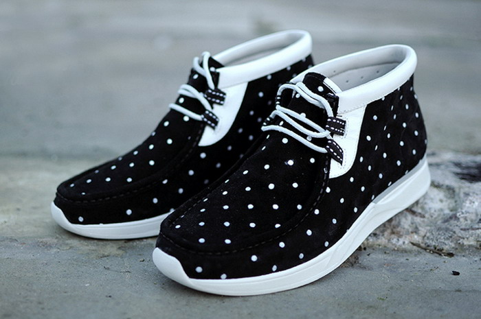 Heather Grey Wall 最近与英伦著名鞋履品牌 Clarks 合作推出全新联乘鞋款。这次由仓石一树(Kazuki Kuraishi)打造的 Heather Grey Wall 以品牌 Sportswear 系列中的 Tawyer 鞋款作为设计基础,在鞋面上使用黑色作底色并加入波点图案以作装饰,然后辅以白色的鞋笼及外底,让鞋款顿时充满流行元素。此外,Tawyer 所运用的 Vibram 鞋底同样不能忽视,其卓越的抓地性能让鞋款更为实用。鞋款现己于 hanon 发售,定价为 99 欧元。 |