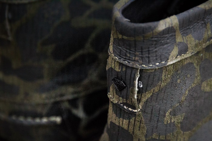 来自加州的街头品牌 Diamond Supply Co. 曾于去年夏天打造了一款 G.I. Boot,此番品牌变为这款靴子带来全新的「Rain Fog Camo」版本。在经典的 6 孔 Moc-toe 工装靴基础上,采用做旧质感的纳帕革结合蜡防爆裂纹材质构成鞋身,并在鞋面上隐约的布满了迷彩图纹,营造出十足的军事与街头质感。除此之外,靴款还搭载 PU 内里与 Vibram 机能大底呈现,为用户提供舒适的穿著体验,而鞋帮处也刻有品牌标志性的 Diamond 钻石标志。目前,这款靴子已可经由 Packer Shoes 购得,定价为 $130 美元。 |