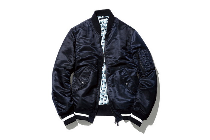 诞生于 2008 年的日本街头品牌 uniform experiment 一直对面料选择、图案设计和配色搭配十分考究。来自于品牌 2014 秋冬系列的 MA-1 夹克就充分体现了其设计理念。从 Varsity 运动夹克汲取灵感,本季 MA-1 夹克在底边与袖口处采用松紧式设计,并以品牌惯用白色条纹加以点缀;而 uniform experiment 标志性的拼色方格图案则被运用在了内里的设计上;最后,袖子上的拉链口袋及纽扣口袋在增添了服饰功能性与实用性的同时,不乏丝毫的运动时尚设计感。蓝、黑两款配色将于本周六登陆品牌指定零售商,售价为 63,000 日元(约合人民币3700元)。  |