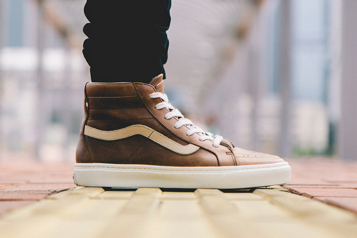在早前抢先预览后,此番我们呈上由意大利鞋履品牌 Diemme 与滑板品牌 Vans 旗下高端支线 Vault by Vans 全新合作打造的 2014 假日季联名系列近照一览。该系列选用了 Vans 两双经典招牌 Sk8-Hi 和 Era 作为轮廓发想,设计上均是运用了奢华的 Horween 皮革作为主要材质,并经由义大利的精致工艺制作而成,再搭载 Vans 签名式的白色硫化胶底呈现。除了上面所示的两款深浅棕色,还有撞色的版本可供选择。这个联名系列将于 11 月开始在 Vans 指定店铺限量发售。