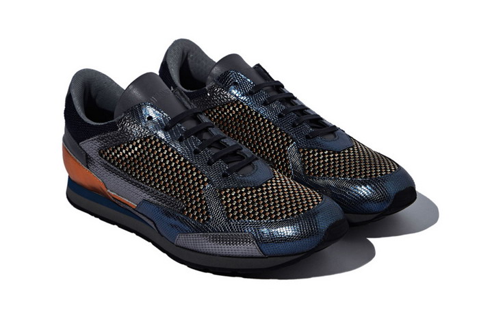 比利时时装设计师 Raf Simons 个人同名品牌日前为 2014 秋冬季度带来这双充满金属质感的运动鞋。在设计上,以常见于品牌产品范畴的跑鞋轮廓作为处罚,采用不同色调及质感的编制面料和皮革材质拼接制作鞋身,内里以网眼为主确保透气舒适度,搭载灰、蓝二色结合的海绵橡胶鞋底,再辅以「R」字和 Raf Simons 标签作为细节点缀。目前,该鞋款已可经由 LN-CC 购得,定价约为 $600 美元。 |