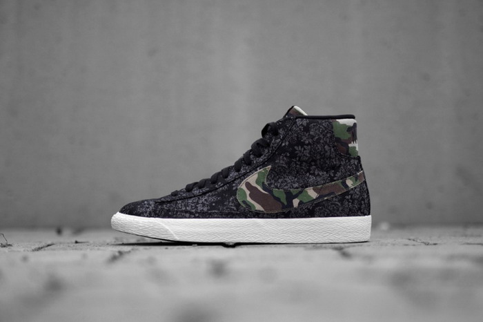 Nike 近日为旗下 Blazer Mid 系列再添新色,推出「Camo Swoosh」配色。该鞋款以黑灰两色印花图案打造鞋身,并在鞋身侧面的 Swoosh logo 处加入迷彩元素,同时鞋舌和后跟处也以迷彩图案点缀,增添整体效果。该鞋款现已可经由包括 Coutie 在内的 Nike 全球零售商购得。 |