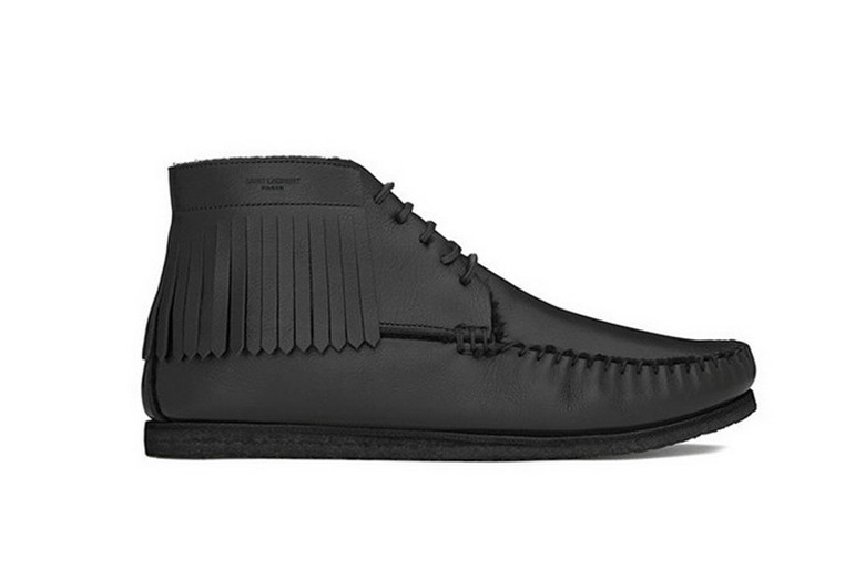 自从 Hedi Slimane 接任掌舵以来,法国老牌奢侈品巨头 Saint Laurent 便逐渐带上了几分青春时尚的街头气息,此番发布的2015秋冬季鞋履系列便是这一转变的有力证明。新系列将近年流行的流苏元素引入 Court Classic SL18/H 、莫卡欣靴等经典鞋型之中,搭配极具高档感的纯黑设计,彰显出穿戴者的强大气场。此组新款现已登陆 Saint Laurent 官网,售价从 595 美元到 795 美元不等,喜欢的朋友不妨留意一下。 |