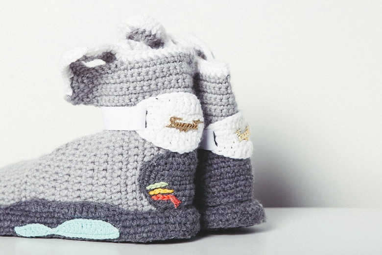 针对令人痛心的「球鞋暴力」而表态,Fuggit 近日仿造 Nike 款式设计出两双针织居家鞋。这特殊的 Nike Air MAG 和 Yeezy 2 可以在家舒适穿著,并且售价低于鞋款市场价格的四分之一。鞋款现已可于 Fuggit 线上商店购买,零售价 $90 美元。 |