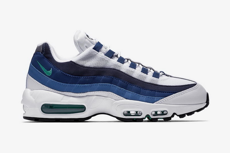 为了庆祝经典跑鞋 Air Max 95 诞生 20 周年,Nike 近日还重新带回这双 OG「French Blue」配色。运用网眼、皮革和麂皮结合制作的鞋身在白色的基础上,侧面以深浅蓝色渐变呈现,并在鞋舌、鞋垫、后跟 Swoosh 和 360 Max Air 气垫单元上以湖绿色增加对比。目前,该鞋款已经登陆 nike.com,定价为 1,199 元。 |