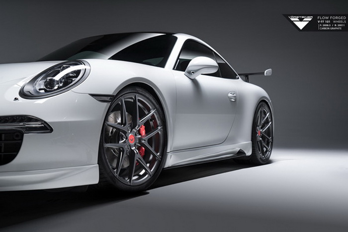 来自美国的知名改装大厂Vorsteiner 日前针对Porsche(保时捷)911 Carrera S推出全新专属「V-GT Aero Pack」改装套件。 对于外观空力套件领域改装拥有丰富经验的Vorsteiner,事实上也非首次针对Porsche 911车型施展外观改变,而此次针对911 Carrera S所推出的「V-GT Aero Pack」套件,不仅彻底让911 Carrera S摆脱温驯的气势,藉由专属空力套件的相辅打扮下,更让穿搭V-GT Aero Pack套件的911 Carrera S拥有更胜911 GT3的性能跑格。 在不破坏原本911 Carrera S优美的身躯下,车头扰流下气坝不仅采用轻量化碳纤维材质制成,为求优异的空气力学表现,在气坝侧边更导入新的风洞设计,且除了车头之外,最显眼的差异莫过于车尾那媲美911 GT3 RS的硕大碳纤维扰流尾翼点缀,同时融入分流设计的扰流下气坝更为911 Carrera S带来绝佳的下压力表现。 而V-GT Aero Pack套件也不光改变911 Carrera S的外观,就连四轮大脚也不忘改以轻量化铝圈作为搭配,透过品牌V-FF 101系列的锻造铝圈结合下,也让前轮以20×8.5、后轮20×11的规格来呈现。