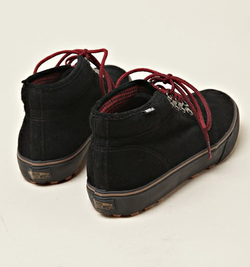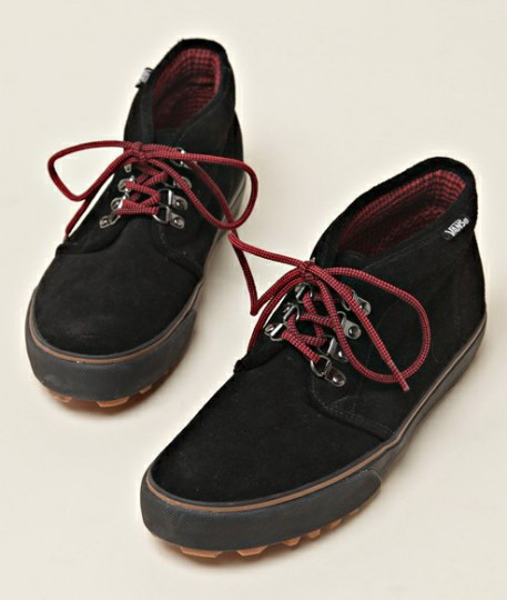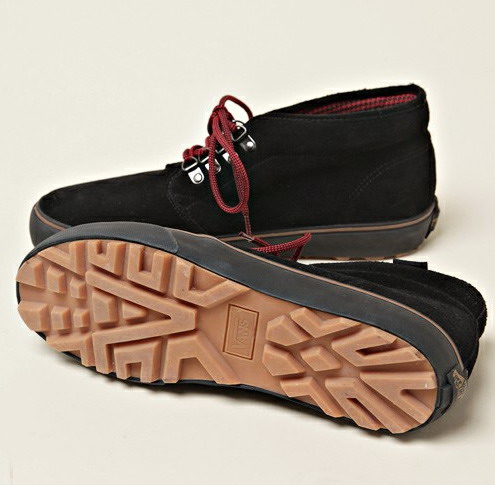 美国知名滑板街头品牌Vans与品牌The Duffer of St. George合作,以着名鞋款Vans Chukka Boots ,打造Fall/Winter 2011全新设计联名鞋款,灵感来自登山outdoor的改款,包括金属扣环以及特殊纹路的鞋底以及抢眼鞋带,都具有相当的户外风格。