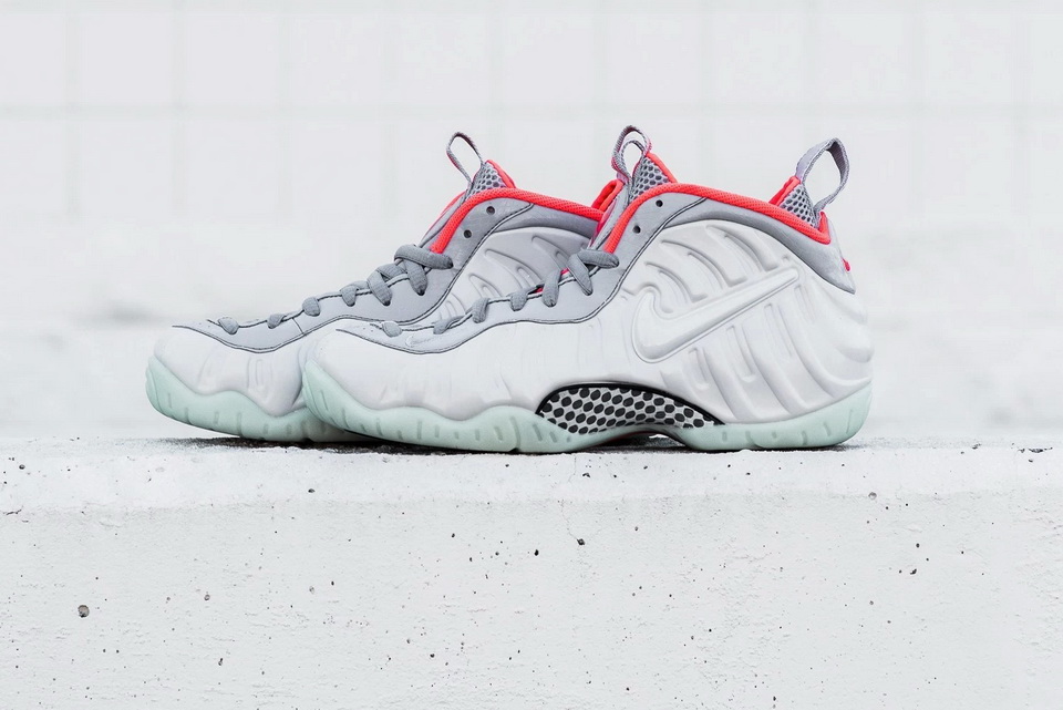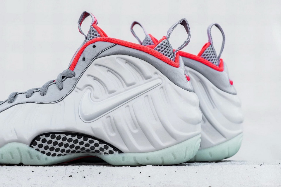 早前已为各位介绍了 Nike Air Foamposite Pro Premium 全新配色「Pure Platinum」,而是次迎来近赏图片。鞋身以淡灰色配搭同色调 Swoosh 标志,后踭拉环绣有「FOAMPOSITE」红色字样。夜光外底搭配橙色内笼,整个配色与 2012 年推出的 Nike Air Yeezy II 配色同出一辙。鞋款已于 Foot Locker 上架,定价为 $250 美元。