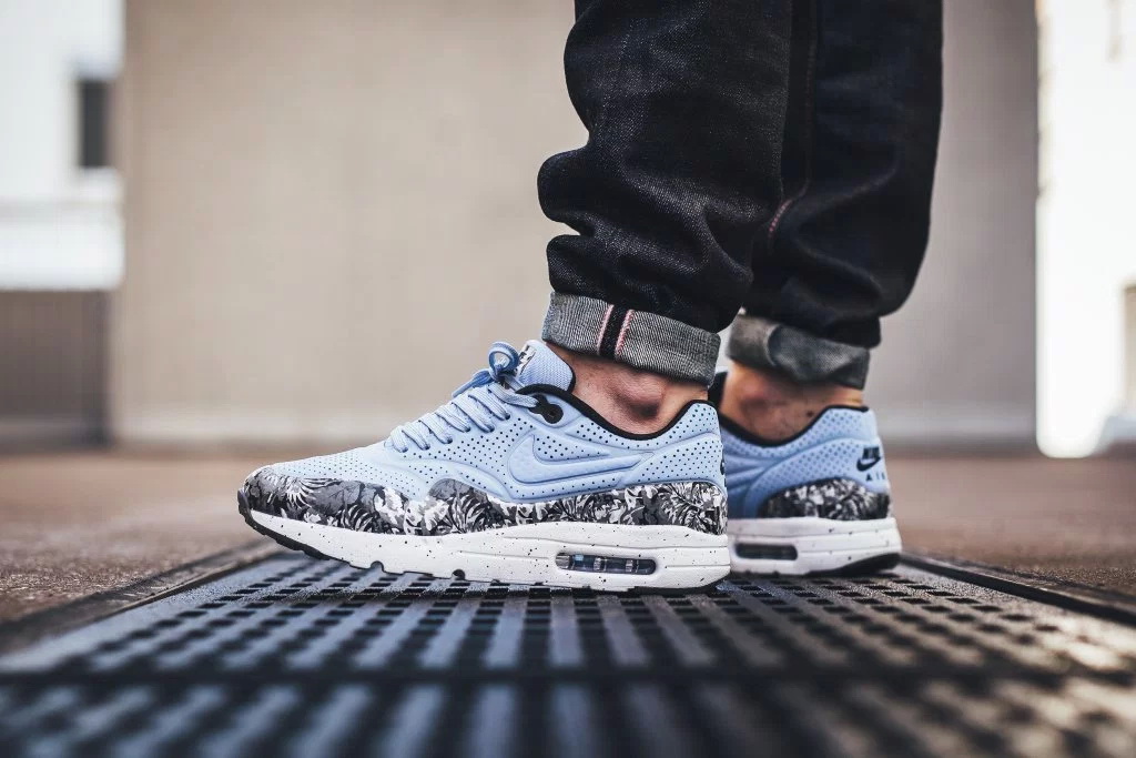 Nike 近日为 Air Max 1 Ultra Moire 版本释出这双充满春天气息的「Tropical」配色。设计上选用了清新淡雅的天蓝色冲孔皮革制作鞋面,搭配鞋周位置的黑、白、灰热带花卉图案增加亮点,而白色中底位置也通过黑色斑点稍加装饰。特别的配色加上抢眼的设计,想必会让你成为今年「Air Max Day」上的焦点人物!目前这双 Air Max 1 Ultra Moire 已可经由 Titolo 等 Nike Sportswear 指定零售商购得,定价为 $180 美元。 |