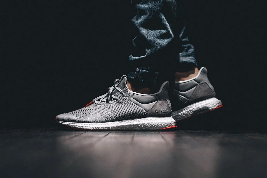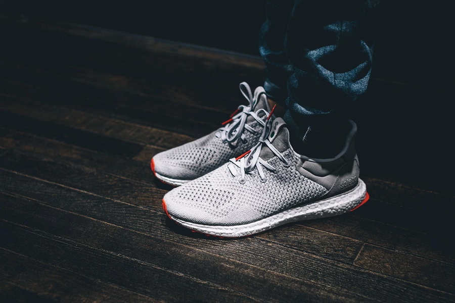 adidas Consortium 的 World Tour 企划来到德国,与柏林球鞋店铺 Solebox 打造了这双全新的 Ultra Boost Uncaged。去掉了两侧支架的 Ultra Boost 鞋身采用灰色 Primeknit 针织材质制作,于鞋舌和后跟融入麂皮与放爆裂尼龍,同时以双方的 Logo 点缀,并分别在鞋带头和前后外底注入橙色调营造对比,最后搭载白色 Boost 中底而成。该鞋款将于 3 月 26 日开始在 wish ATL 等指定店铺发售。