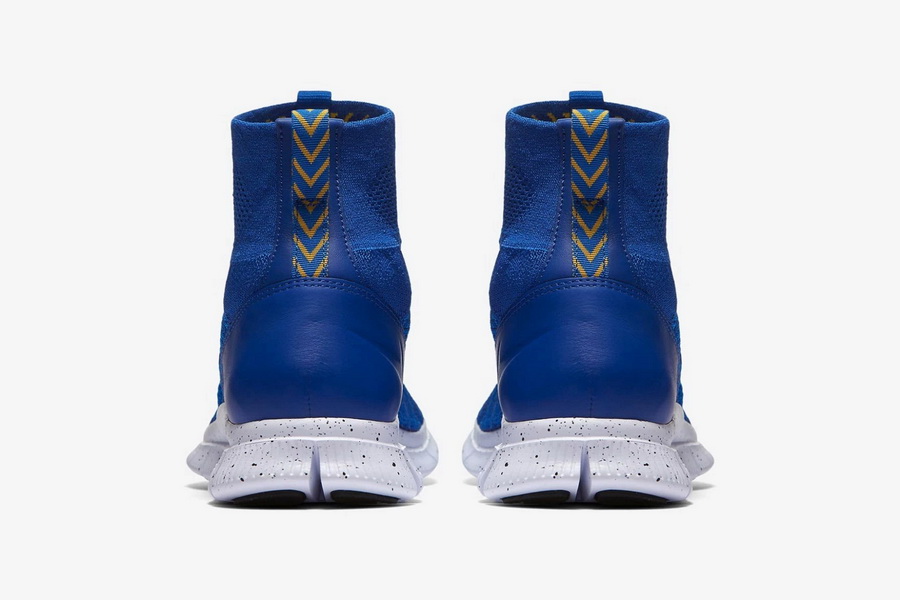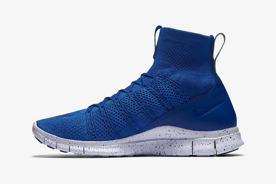 除了「Triple White」全白配色和激似 HTM 配色的黑色版本外,Nike 此番又为超人气鞋型 Free Mercurial Superfly 带来这双「Game Royal」配色。夸张的靴筒鞋身采用了「皇家蓝」色 Flyknit 编织物料搭配 Dynamic Fit 动态贴合系统制作而成,确保透气性的同时也营造出别样优雅气息。除此之外,设计师还通过后跟鞋提的「箭头」图案,以及亮黄色鞋垫的设计体现速度感,最后搭载招牌式的 Nike Free 5.0 斑点鞋底呈现。据悉这双 Nike Free Mercurial Superfly「Game Royal」配色会在 4 月 28 日正式发售,定价为 $200 美元。 |