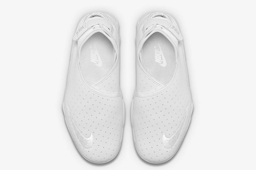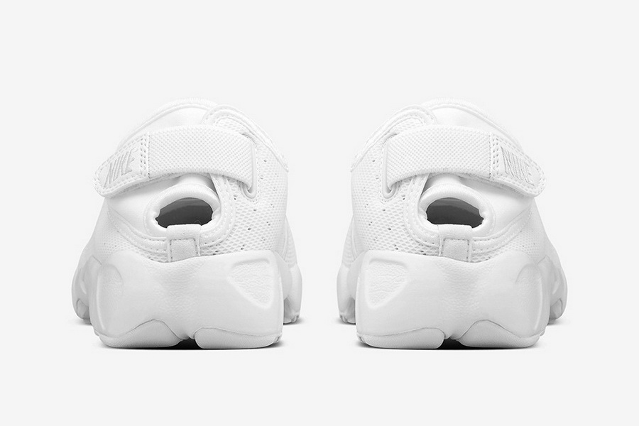 初时以肯尼亚跑手为对象而设计的 Nike Air Rift,在 1995 年面世至今经已成为了品牌其中一款经典跑鞋。其原版设计灵感来源于「东非大裂谷」的山脊断层线条,并有类似日本武士鞋的分裂鞋头和鞋面大魔术绑带设计。而据 Nike 释出的最新 Air Rift Wrap 鞋款中,在保持原有轮廓的基础上,省略了分裂鞋头和鞋面魔术绑带元素,增加了网眼鞋面的覆盖面积,整体设计变的更为简约,并包括了全白及全黑配色。目前这款最新 Nike Air Rift Wrap 暂无发售细节公布,请大家密切留意日后报导。