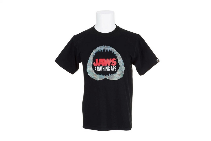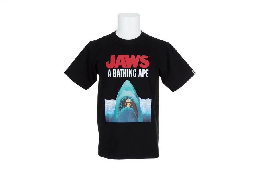 A Bathing Ape 与「鲨鱼」之间的联系可谓非常紧密,比如在过去二十年间风靡街头的「Shark Parka」,便是品牌最具代表性的设计之一,今季品牌又从 Steven Spielberg 执导的经典惊悚电影《Jaws》汲取灵感,带来两款充满趣味的印花 T-Shirt。其中一款将「BAPE HEAD」猿人头和「A BATHING APE」字样巧妙融入电影海报之中;而另一款则运用「1ST CAMO」迷彩组成了锋利的「鲨鱼牙」图案。目前该系列已可经由 colette 等指定零售商购得,每件定价为 95 欧元。 |