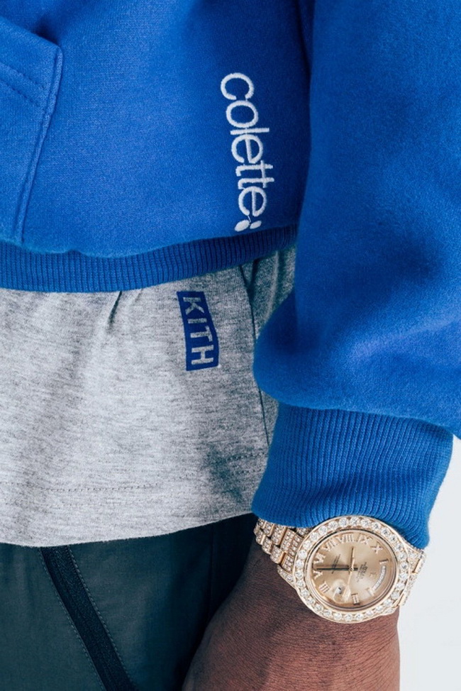 纽约设计师 Ronnie Fieg 数日前宣布了 KITH 与巴黎时尚名所 colette 的联名企划,而该系列的神秘面纱也紧接著被正式揭开。正如猜测,colette 签名式的蓝、白二色作为主调贯穿系列始终,其波点 Logo 还与 KITH 标志作结合,呈现于连帽衫、防风夹克、T-Shirt 和帽款等单品之上。此外,Ronnie Fieg 还邀来 PUMA 和 Beats by Dr.Dre,打造同色系主题的 Disc Blaze 和 Blaze of Glory 两双鞋款,以及 Pill+ 蓝牙音箱和 Powerbeats 2 Wireless 无线运动耳机。最后,KITH 与 colette 还邀来了人气说唱歌手 Fabolous 担当模特演绎 Lookbook。这个亮点多多的联名系列预计在下周发售,还请留意 Yobest.com 的后续报道!