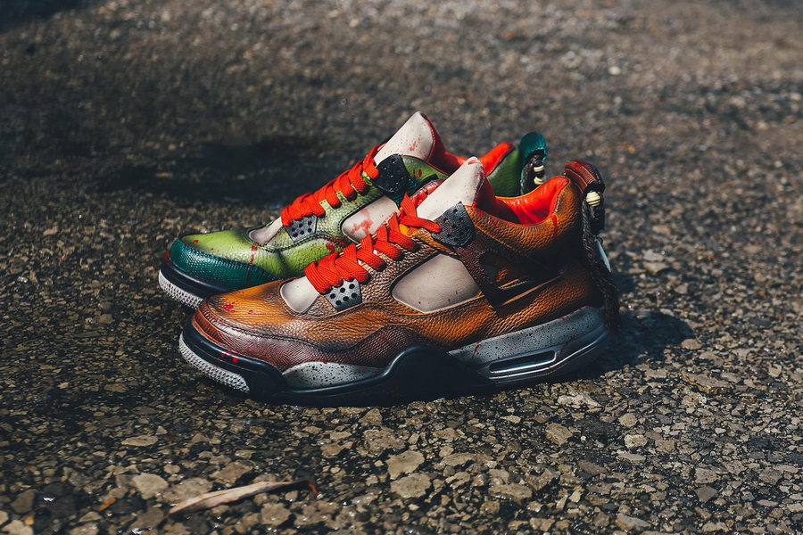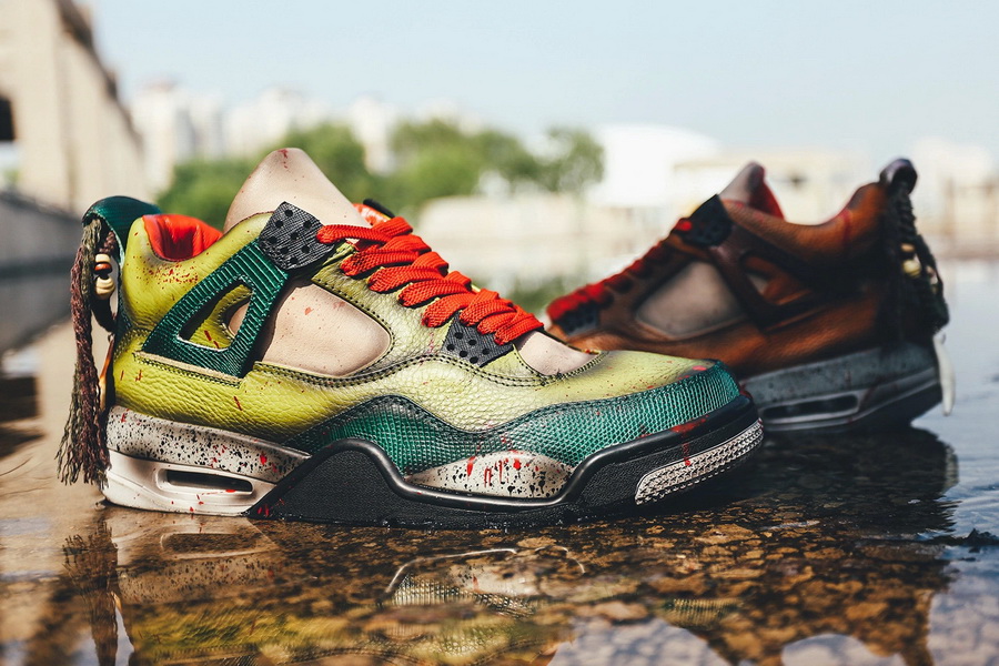 以超人气游戏魔兽世界《Warcraft》为蓝本改变的魔幻巨制《Warcraft: The Beginning》,将于本周正式上映,而国内涂鸦创意机构 400ml 也特别打造了这双 Air Jordan 4「Warcraft」主题定制版球鞋以示庆祝。灵感源自游戏中著名的「恶魔之血」事件:「兽人」作为「德拉诺」星球的原住民,本来的肤色是黄色偏棕色,在被「古尔丹」引诱喝下恶魔之血后,部分氏族眼睛变红、皮肤变绿,从此开启了混乱与梦魇的序章。设计上采用了上乘蜥蜴皮搭配十字纹水牛皮还原兽人的皮肤质感,而左、右两只鞋也分别以变身前后的棕色和绿色为主调,辅以特殊做旧质感和斑驳血迹,以及麻绳与兽牙还原其好战与凶悍的种族特质,最后在鞋跟部分雕刻代表兽人的纹章让主题感更加明显。 据悉这双鞋将于 6 月 9 日至 10 日期间举办的 BJCC 北京漫控展「The Block」展区中正式亮相,喜欢动漫、涂鸦和球鞋的朋友不容错过!