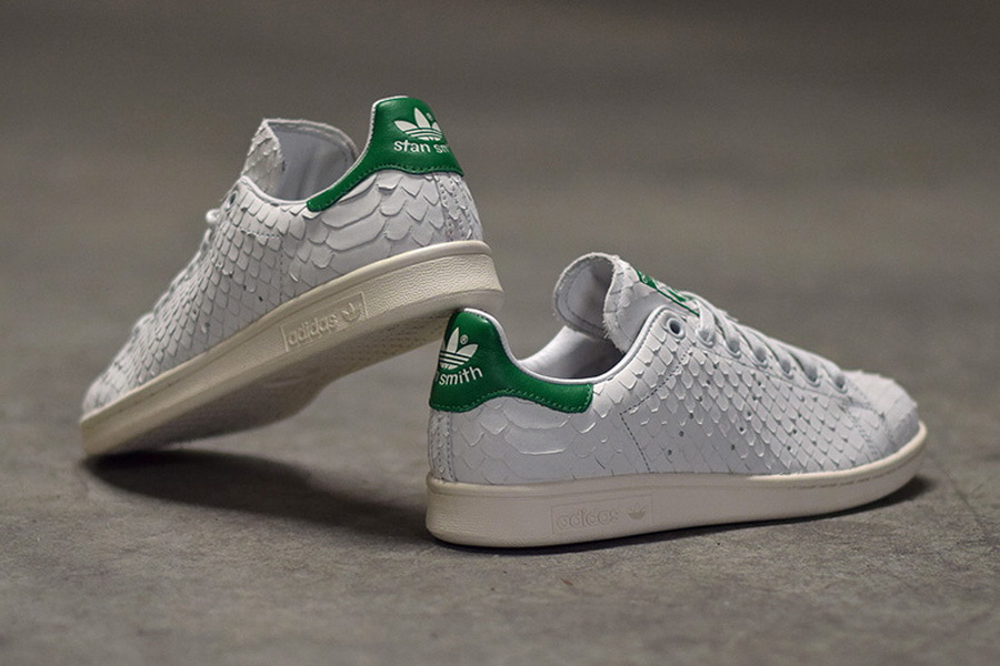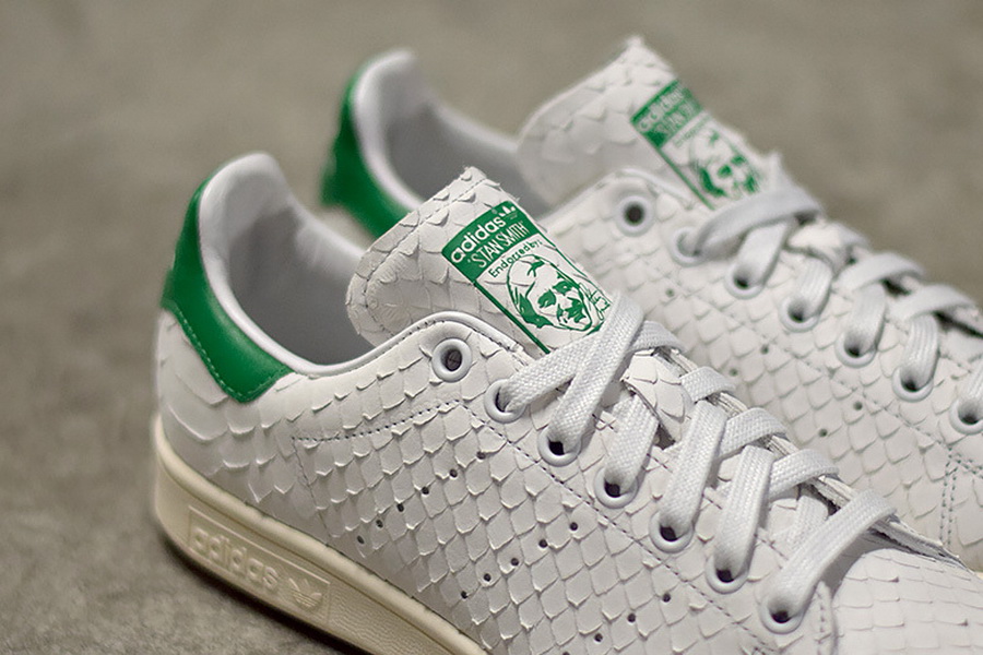 在看过银、黑二色后,adidas Originals 今季还为 Stan Smith 带来这双 OG 蟒蛇皮版本。经典的鞋身采用奢华感满载的人造蟒蛇皮制造,以白色为主调,并在鞋舌和后跟注入绿色,同时搭载米白色大底勾勒出 OG 气息。定价为 129 欧元,目前这双全新的 adidas Originals Stan Smith 已可经由 SNKRS 购得。 |