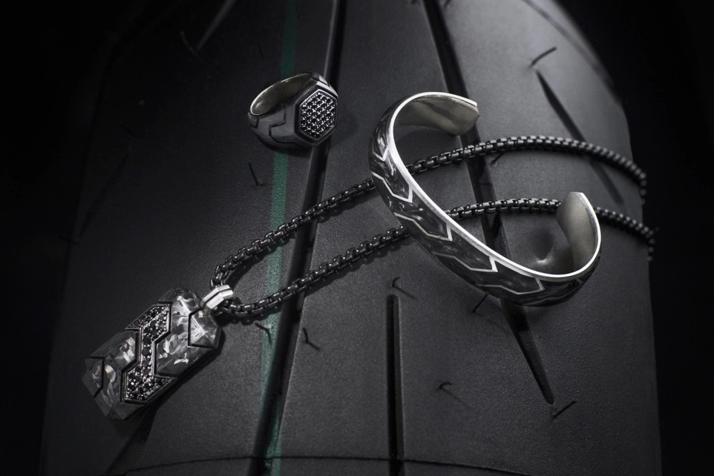 为了庆祝自行研发鍜造碳而且大成功,美国珠宝及腕表品牌 David Yurman 与神级摩托车,工程师 Walt Siegl 以这种物料注入了另一神级速度机器 MV Agusta Brutale ,以该物料覆上前后泥挡前悬挂支架等外观可见部件,并在后面冠以 The David Yurman Forged Carbon Moto 的名号。 鍜造碳本来就常见于做车身部件, Lamborghini Sesto Elemento 也使用过。 也可以用在首饰与腕表,其实自从 Audemars Piguet 爱彼表的独家专利合约结束后,很多腕表在此后都爱采用为表壳,像 Panerai 与 Bell & Ross 都使用过,当然,因为用上极幼的碳纤造成不同层次,再以特制机器压缩裁切,制法接近,配方却家家不同,有部份更用上纳米级别的,使得既能轻巧,也极其坚韧,成为了大表径腕表的新血路。也因为其上的纹路都不是均称,喜欢独一无二的人,也特别喜欢,于是 David Yurman 亦以此作为首饰材质,配合银、黑钻与灰色水晶,打造出这系列 Forged Carbon Collection。 |