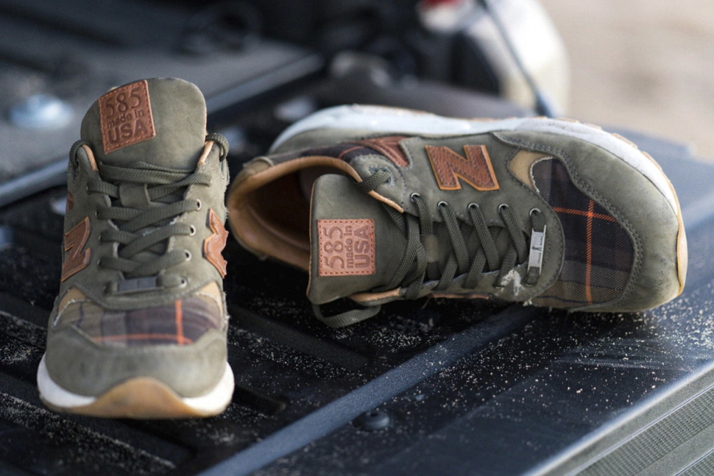 波士顿工作服与户外配件品牌 Ball and Buck,与 New Balance 联手推出全新 585 Made in USA「Sporting Gentleman」鞋款。鞋款配色糅合了 Ball and Buck 户外风格,鞋身以深绿色麂皮为主,并以格纹帆布加入鞋面及鞋侧两边。鞋身内、外侧的「N」字标记及鞋舌压印有鞋款型号的牌子均以皮革,为鞋身打造更丰富的质感。银色鞋带扣上刻有 Ball and Buck 的品牌标志及名字,而后跟亦以打孔方式将「MADE IN USA」呈现,为球鞋带来满满的细节。此联名鞋款将于 8 月 27 日在 Ball and Buck 率先上架,并于 9 月 17 日在全球指定经销商发售。
