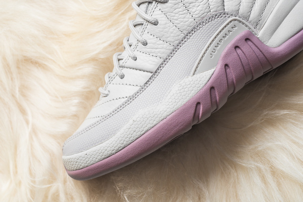 Air Jordan 12 Retro 推出女生专属全新「Plum Fog」配色。白色鞋身以皮革打造,带来优越质感同时提供舒适的著用感,并搭配两颗金色鞋带扣,令鞋款更显尊贵。搭配粉紫色内笼及外底,并加入白色皮革打造鞋舌,再于其顶端用粉紫色绣线打造的 Jumpman 标志及「TWO 3」字样,凸出此为 Jordan Brand 旗下之鞋款。鞋底设计加入了全掌碳纤维承托板配合 Nike Zoom Air 技术,提供高度灵敏的避震缓冲效果。鞋款将与早前介绍的 Air Jordan 12 Retro「Black」配色同样在 9 月 10 日上架,定价 $160 美元并于如 Sneaker Politics 的指定经销商上架。