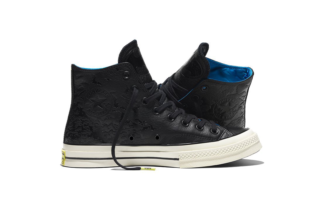 为庆祝出自 Frank Miller 之手的经典漫画《The Dark Knight Returns》诞生 30 周年,DC Comics 最近特别与 Converse 合作带来一个纪念 Chuck Taylor All Star ’70 系列。其中黑色版本采用高档皮革制作,在两侧融入低调的浮雕式细节,并搭配蓝色绸缎内里,而另一双则以帆布作为鞋身主体,并将节选漫画图案满版遍布于其上。两双鞋款均在鞋带头、后跟和鞋垫上以萤光黄 Batman Logo 点缀,而半透明外底上亦印有图案呼应主题。目前,这个 Converse Chuck Taylor All Star ’70 DC Comics Batman 系列已可经由 Converse 线上店舖和指定门店购得。