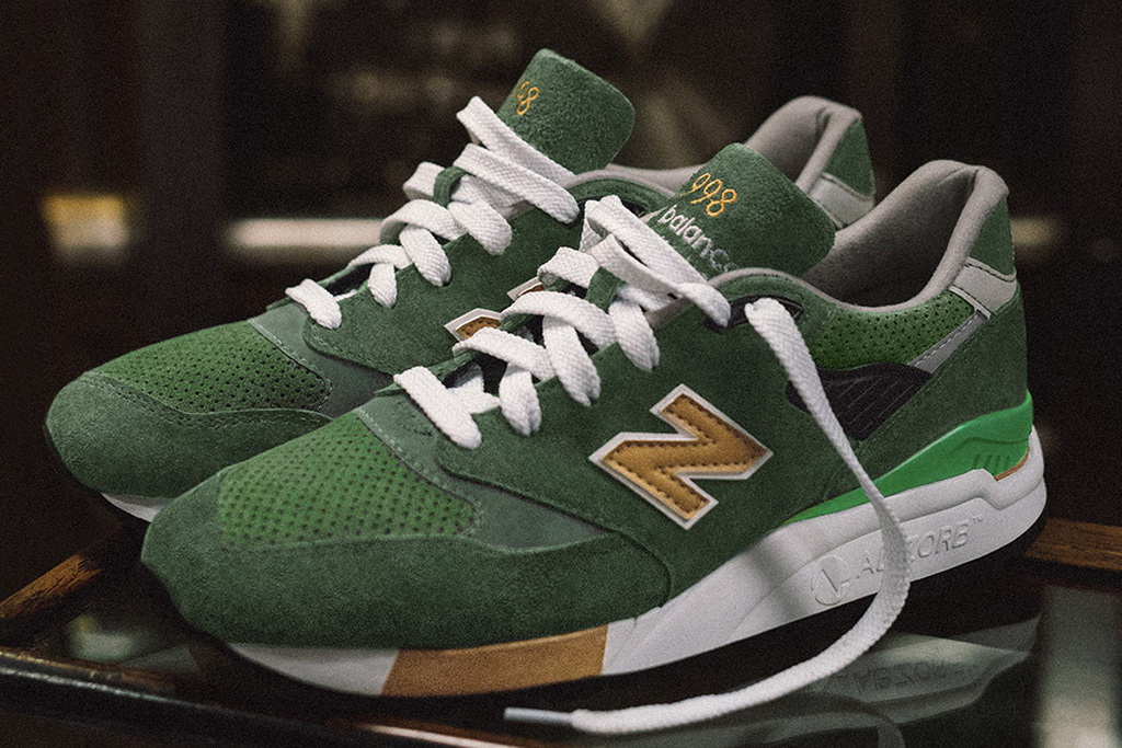 J.Crew 联手 New Balance 将 998 带回 1860 年代,象征着彼时美国货币的「Greenback」配色此番来到这双复古跑鞋之上。于南北战争时期发行的流通货币,以绿色和金色为主,全新 998 亦将这一元素发挥到极致。白色鞋底和鞋带作点缀的同时,还选用冲孔处理的上乘皮革以及少许皮质物料加持,呈现令人颇为印象深刻的整体效果。鞋款即将于 10 月 15 日限量登陆 J.Crew 门店。 |