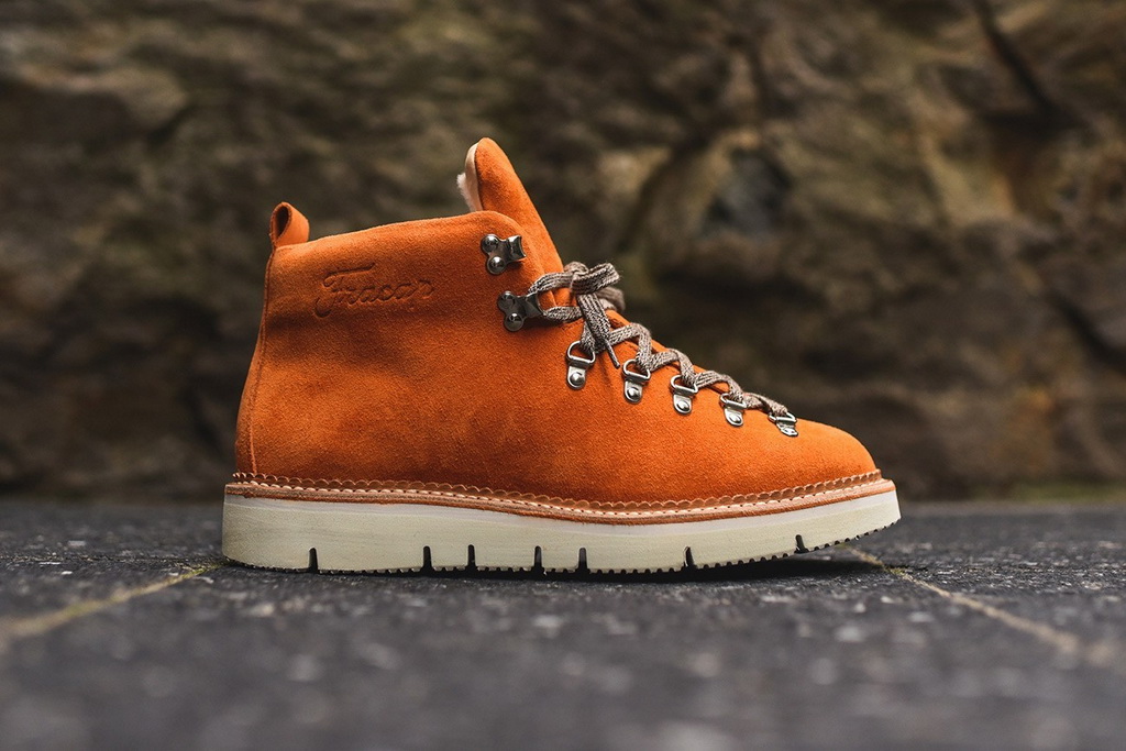 在继去年末的合作后,纽约设计师 Ronnie Fieg 再度与意大利鞋履品牌 Fracap 合作带来全新联名登山靴系列。设计风格与上两双靴款一致,全新的 RF-120 以橘色、黄棕和深蓝三色呈现,分别采用高档麂皮和意产皮革制作,在内里铺上柔软羊毛,搭配银色金属 D-ring 鞋带扣和 Vibram Flex 户外大底,并分别将 Ronnie Fieg 和 Fracap 的 Logo 低调点缀于鞋舌和鞋筒侧边。每双配色均限量不到 100 双,定价为 $275 美元,将于 10 月 28 日开始在 KITH 曼哈顿、布鲁克林、女装门店、Bergdorf Goodman 店铺和线上商店发售。  |
