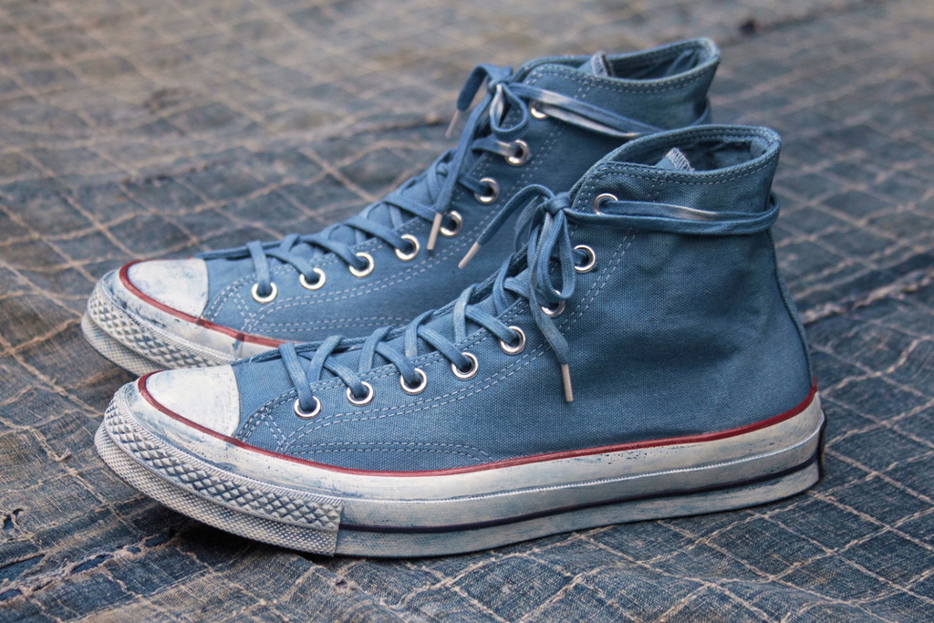 来自荷兰的单宁品牌 Tenue de Nîmes 在 2008 年由设计师 Menno 和 René 所创立,以法国的古老城市 Nîmes 作为灵感,一直扎根于阿姆斯特丹,开发以丹宁概念为主打的产品,更成为不少品牌的联名对象。今回,品牌再度与 Converse 合作,带来这 Converse Chuck Taylor All Star’70 Hi,承继首回蓝染作品之好评,继续找来 Blue Print Amsterdam 的好友 Celia Geraedts 进行手工靛蓝染色,每双都经过 4 重的上色以及洗水工序,制作出落色独一无二的蓝染限量版本。有兴趣的朋友可于 Tenue de Nîmes 官方网站入手。