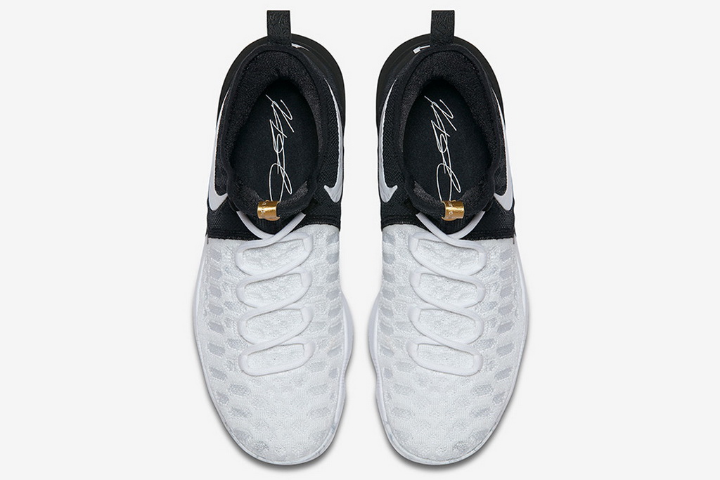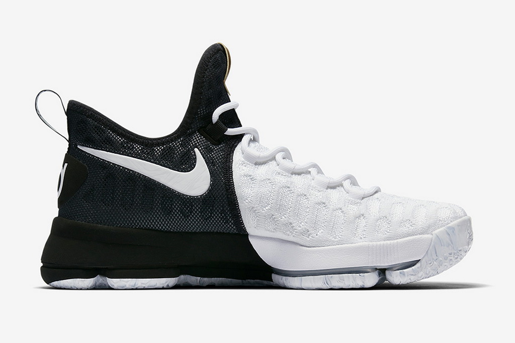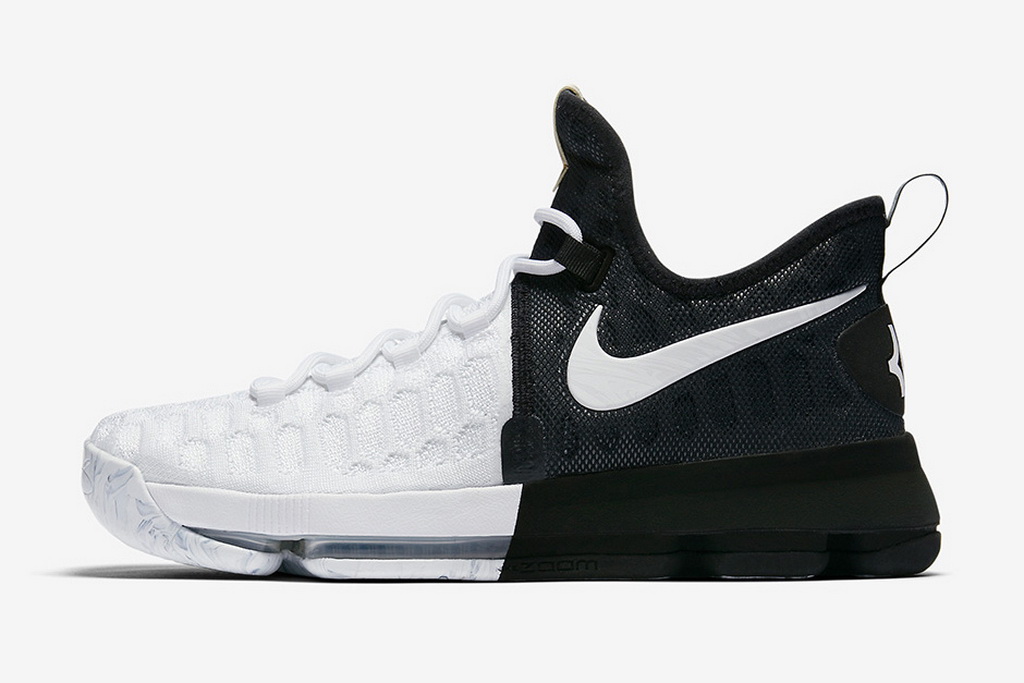 NBA 球星 Kevin Durant 之签名鞋款 Nike KD 9 推出全新「BHM」配色。每年二月之所以被称为黑人历史月(Black History Month),是因为用来纪念美国黑人为战胜奴役制度、偏见及贫困,回顾黑人为美国文化和政治生活做出的贡献。鞋款前足位置采用白色聚酯纱线并以 Flyknit 技术编织而成,而后跟黑色部分则采用网布与泡棉打造,为用家带来如袜般的紧密贴服,带来舒适著用效果。中底选用改良了的 Nike Zoom Air 气垫,为用家带来更好的灵活度,提供比以往更为灵敏的缓震效果。据悉此 KD 9 全新「BHM」配色将于 2 月 16 日在美国 Nike Store 上架,定价为 $150 美元。 |