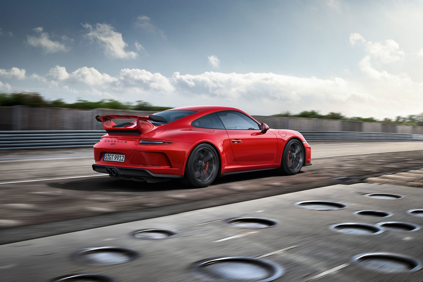 Porsche 日前在日内瓦车展发布全新 2018 年式样 911 GT3 跑车,继续书写「911」的传奇。新车在外形方面延续了 911 的家族式设计,其中前脸部分换装了更大的进气格栅,看起来更加凶猛激进,而车尾方面则配有大尺寸后扰流板,搭配中置双出排气系统,整体看上去更具立体感。动力方面,911 GT3 将搭载一台 4.0L 六缸自然吸气引擎,经过重新调校后最大功率将超过 500hp 大关,百公里加速仅需 3.4 秒,最高时速达 318 km/h,传动方面除了 7 速 PDK 双离合器变速箱版本之外,还有 6 速手动变速箱版本可选。据悉 2018 年式样 Porsche 911 GT3 将于明年正式发售,定价从 $14.3 万美元起,感兴趣的朋友不妨登陆 Porsche 官方网站了解更多。 |