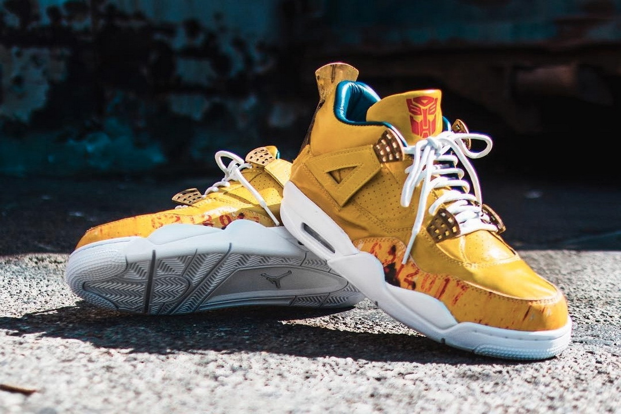 让影迷苦等三年的科幻大作《Transformers: The Last Knight》终于在全球震撼上映,而球鞋客制大师 The Shoe Surgeon 也特别以此为主题,为本片主演 Mark Wahlberg 打造了一双 Air Jordan 4「Transformers」客制版本!众所周知 Wahlberg 是一名不折不扣的 Sneakerhead,在他多达百双的球鞋收藏中大部分来自 Jordan Brand,足以见得他对于 Air Jordan 系列的喜爱。而这双 The Shoe Surgeon 客制的版本是以电影中的人气角色「Bumble Bee」为灵感,因此采用了亮黄色皮革制作鞋身,辅以类似斑驳锈迹的作旧处理丰富细节,最后通过黄铜鞋带扣,以及雕刻有「Autobots」Logo 的后跟组件呈现机械美感。 |