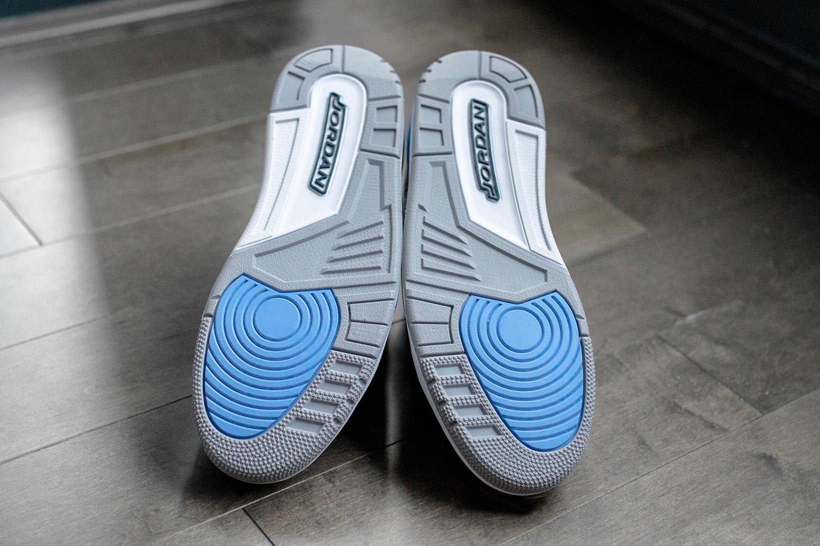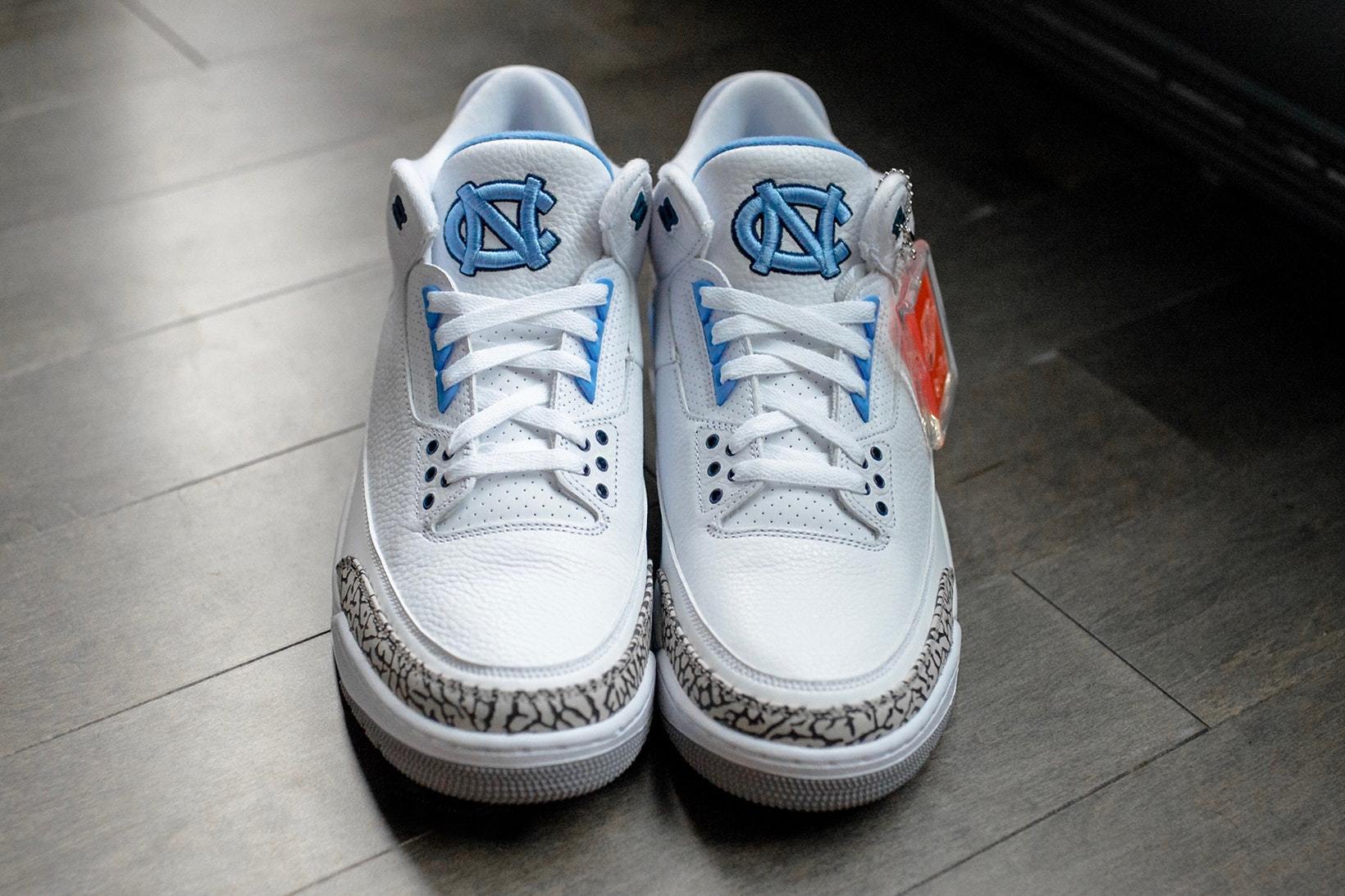 北卡大学是 Michael Jordan 传奇生涯的开端,而主打北卡蓝的「UNC」别注配色,也是 Air Jordan 系列最经典也最具人气的设计之一,就连 Virgil Abloh x Air Jordan 1 也迎来这款别注设计的登场,而此前曝光的 Air Jordan 3「UNC」别注配色,此番也迎来更多细节图片的释出。其鞋身采用白色优质皮革制作,辅以北卡蓝色细节稍加点缀,同时保留了最具代表性的「爆裂纹」元素,而鞋舌上则绣有北卡大学的校队 Logo。可惜的是这双鞋仅为「Friends & Family」限定配色,且全球限定 250 双,未来是否会迎来市售我们拭目以待。 |