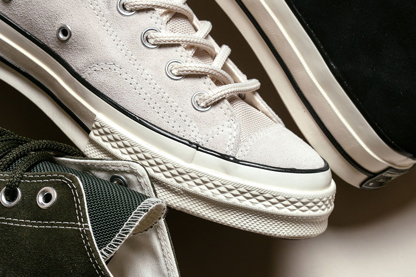作为 Converse 旗下最经久不衰的鞋款,Chuck Taylor All Star 70 今季又迎来全新「Suede」别注系列的登场。新系列三双鞋在设计上分别采用「Utility Green」,「Natural Ivory」和黑色为主调,并选用了最为优质的麂皮材质为原料制作鞋身,不过鞋舌部分则是帆布材质形成对比,而鞋身内侧的「五星」Logo 也采用了特别的军事风格设计。据悉该系列三款配色现已正式在 Features Sneaker Boutique 等指定零售商上架,每双定价为 $95 美元。 |