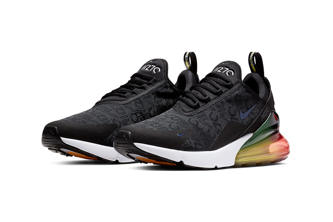 Nik Air Max 270 也在假日季迎来一款与众不同的配色设计「Black/Multicolor」,以黑色为主色,鞋面可见 Air Max 270 符号印花,并以暗蓝色 Swoosh Logo 点缀。此鞋的亮点无疑是多色渐变的后跟可视化气垫单元,呈现类似彩虹的丰富色调,充满假日气息。目前尚无此款的具体发售消息,但预计会在年底上架,有兴趣的朋友不妨多加留意。 |