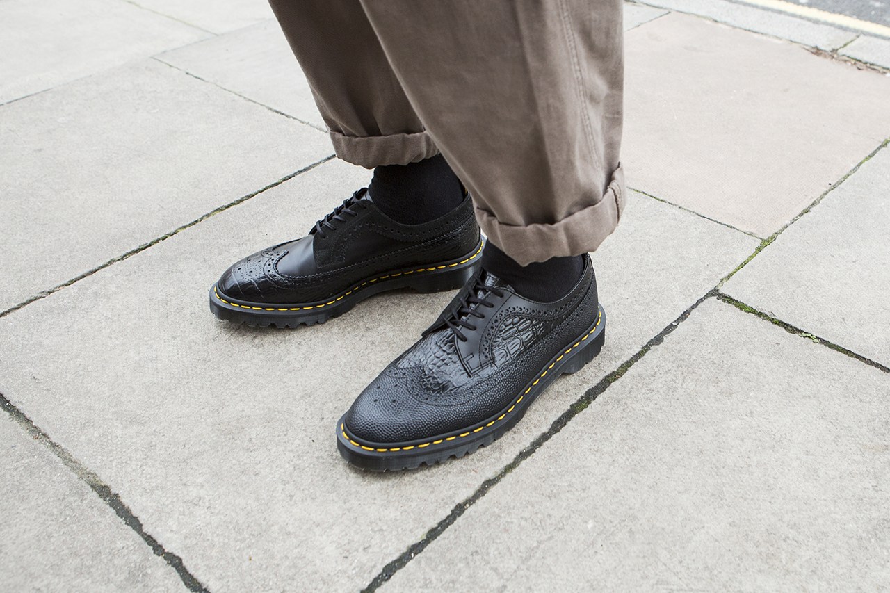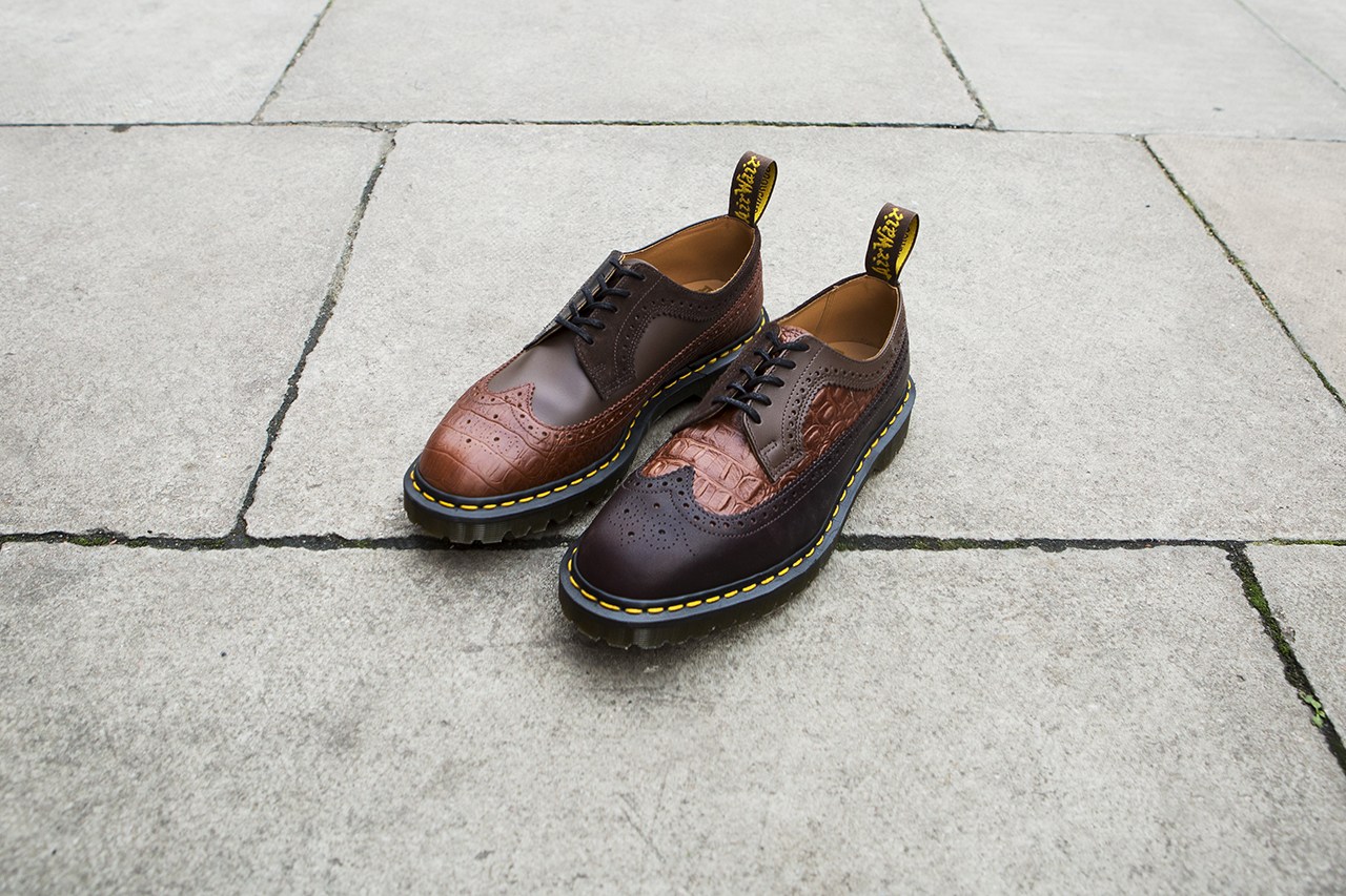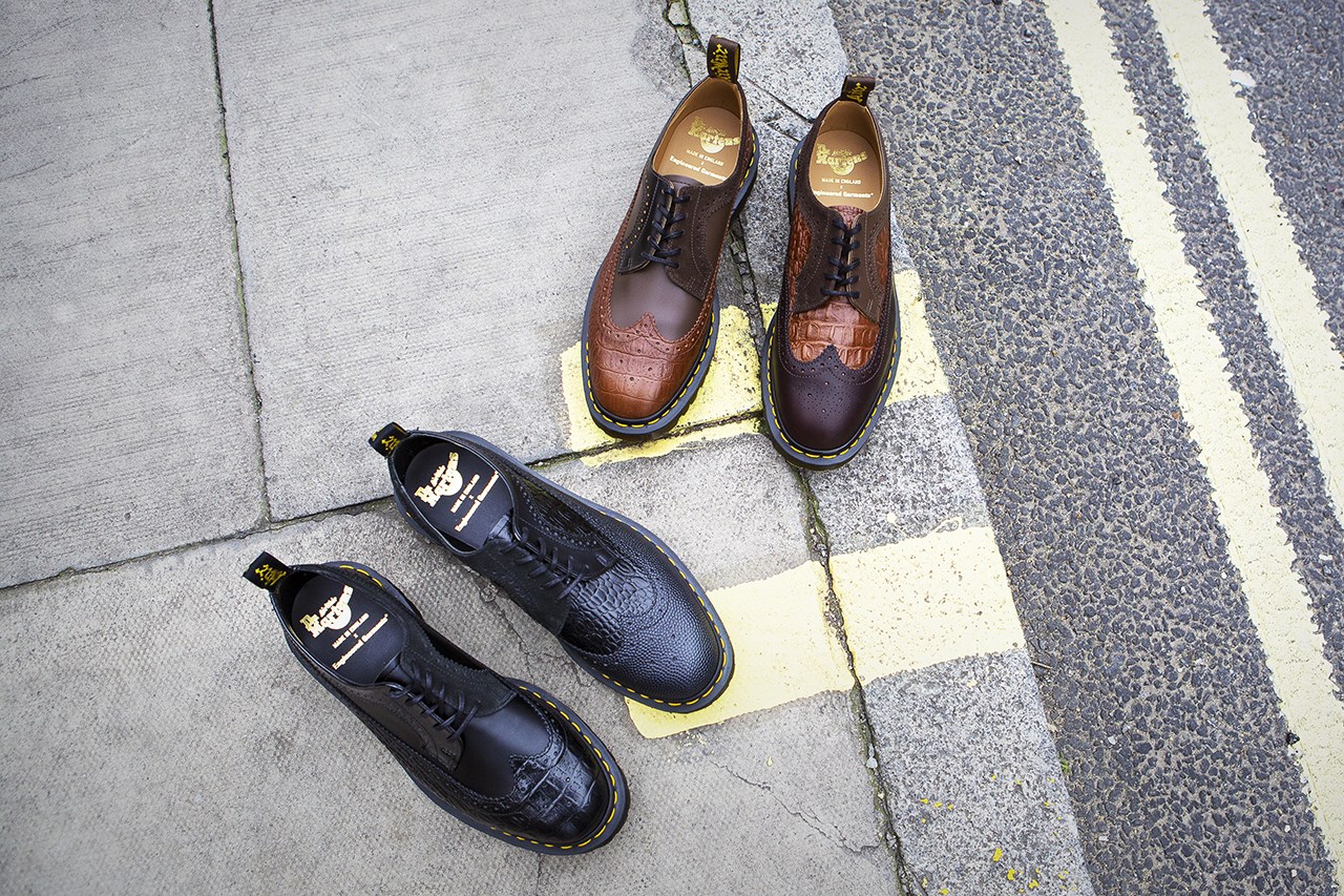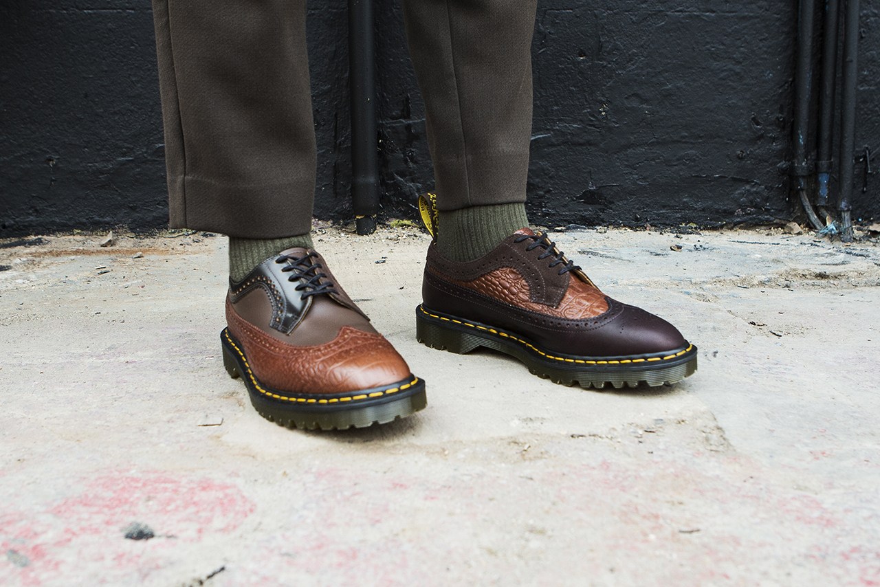 早前 11 月,Engineered Garments 与 Dr. Martens 联名发售了一款 3989 五孔皮鞋,并于近日对该鞋款进行了少量补货。此番联名打造的鞋款采用了三种纹理的皮面 ﹣ 光滑皮面、荔枝皮面、带有鳄鱼纹路的皮面,设计师将三种皮革不对称地使用在左右两只鞋上,使原本颜色深沉的皮鞋多了几分俏皮。Dr. Martens 的自身特色也被保留,例如后跟的拉袢,水晶大底,还有 3989 系列略微尖窄的鞋头。目前,该鞋款可在 Dr. Martens 官网购买,喜欢的朋友不要错过。 |