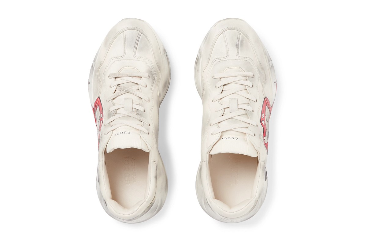 最近复古风盛行,Gucci Rhyton Sneaker 也迎来一款新配色。Gucci 此次并没有选择彩色鞋面,而是选用了白色皮革鞋面,并且将皮革表面进行了做旧处理。另外,鞋身侧面印有醒目的 「Gucci」的字体,配合上浓艳的红唇和蛇舌,这款鞋带来了浓郁的 60 到 70 年代摇滚风。这款生产于意大利的 Rhyton Sneaker 目前可在 MR PORTER 购得,定价为 $890 美金。 |