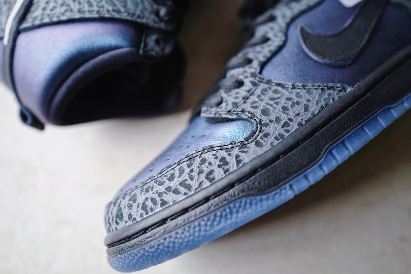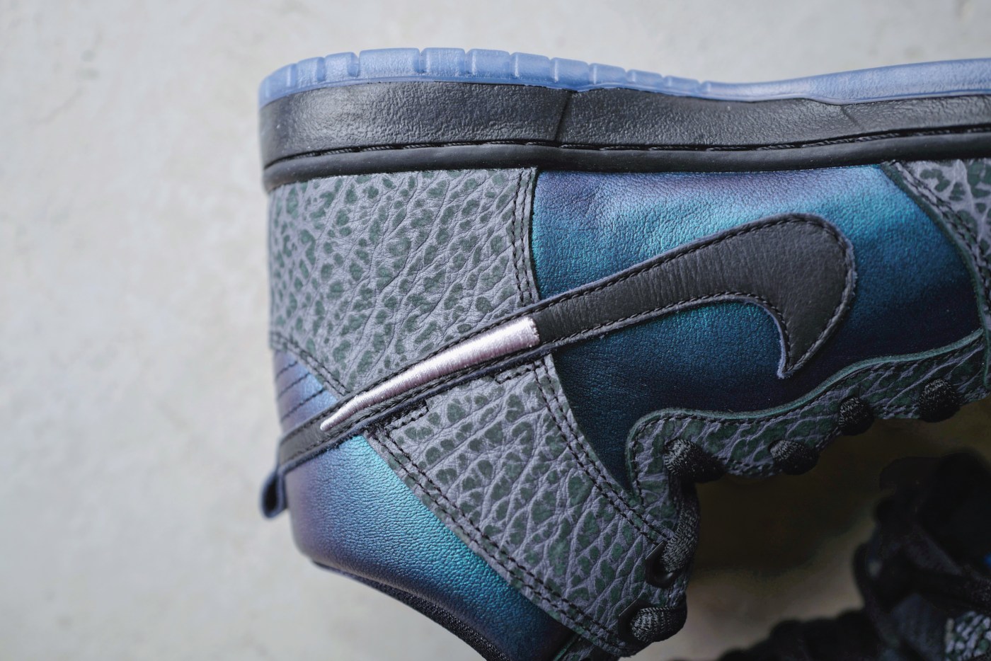 今年的 NBA 全明星周末已经在 Charlotte Hornets 主场光谱中心圆满落幕,而知名滑板店铺 Black Sheep 也特别携手 Nike SB,以「Black Hornet」为主题打造全新 Dunk High 联名配色。设计上采用了带有渐变效果的皮革材质制作鞋身,并以 Hornets 招牌湖绿色和紫色为主调,此外鞋身周围则融入了经典的「爆裂纹」细节,而侧身 Swoosh 也加入了拼接元素增加亮点,最后通过鞋舌上的「BLACK SHEEP」字样点名身份。该鞋款早前已经在 Black Sheep 官网独家首发,之后将于 2 月 22 日开始在 Nike SB 门店和 DEAL 和 WZK 等指定零售商发售,喜欢的朋友不容错过。 |