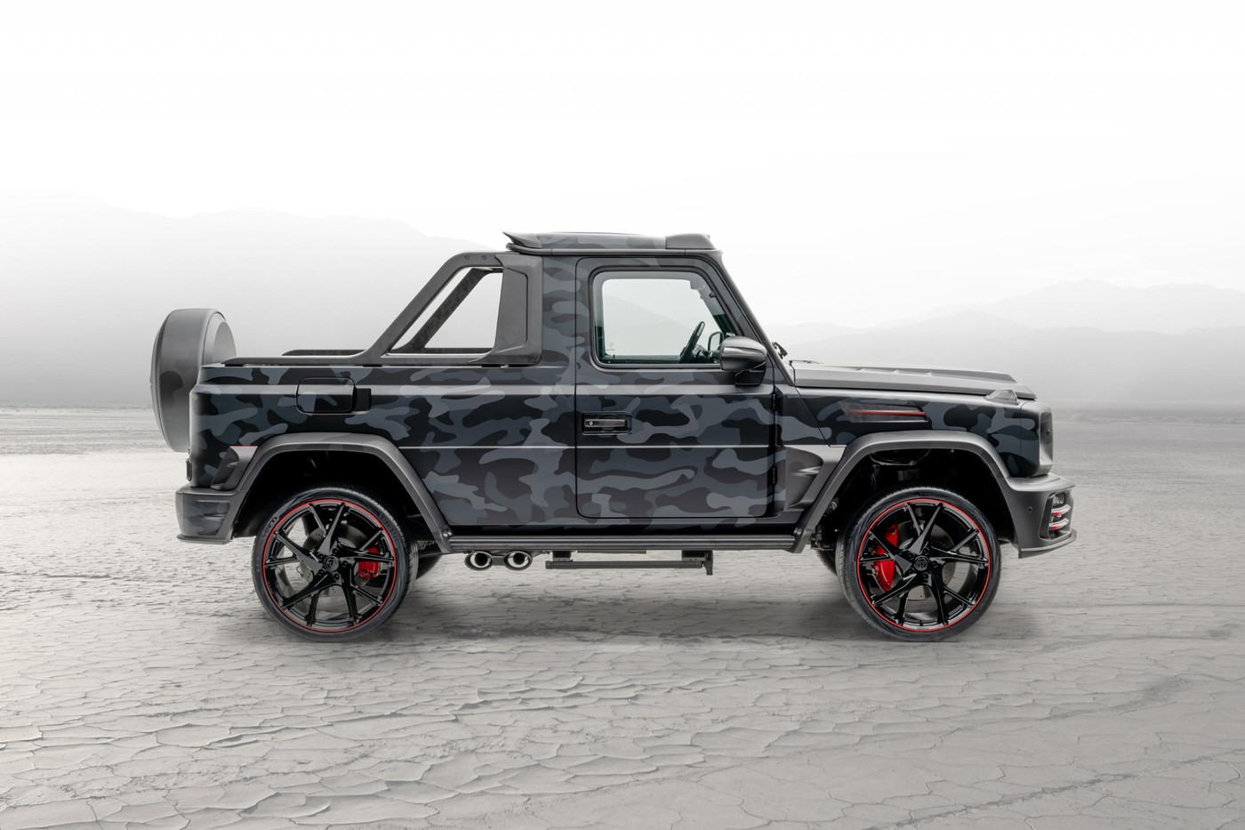 在早先带来要价 $360 万美元的 Mercedes-AMG G63 改装版本后,德国知名改装大厂 Mansory 继续以此为题揭示了一款 Mercedes-AMG G63 全新「Star Trooper Pickup Edition」。全车移除后座配置,包括货床和备胎罩,皆换上灰色迷彩样式佐以 24 英吋合金轮匡、红色 LED 灯及碳纤维物料注入,内装则同样呼应外装,为座椅、车门饰版、中控台与手套箱等位置注入带有红色点缀的迷彩印花,红色星状车顶篷更是一大亮点之一。 动力部分尽管官方尚未公布确切数据,但 Mansory 的调校一向不会令车迷失望,在去年同样为「Star Trooper」主题的 Mercedes-AMG G63 改装 SUV 之中,便拥有更大的涡轮增压引擎、高性能排气系统和重新调整的 ECU 等升级,能够发挥 850 匹马力和 1,000 Nm 扭矩的输出,估计此番 Pickup Edition 在动力方面应是相近配置。同理,官方亦未透露此车价格,但从 SUV 版本定价 $613,100 美元来看,有兴趣的车迷可得准备好足够银弹。 |