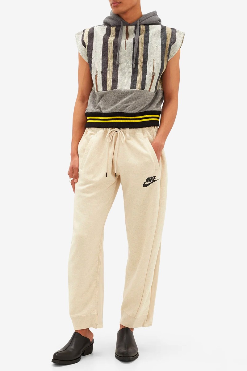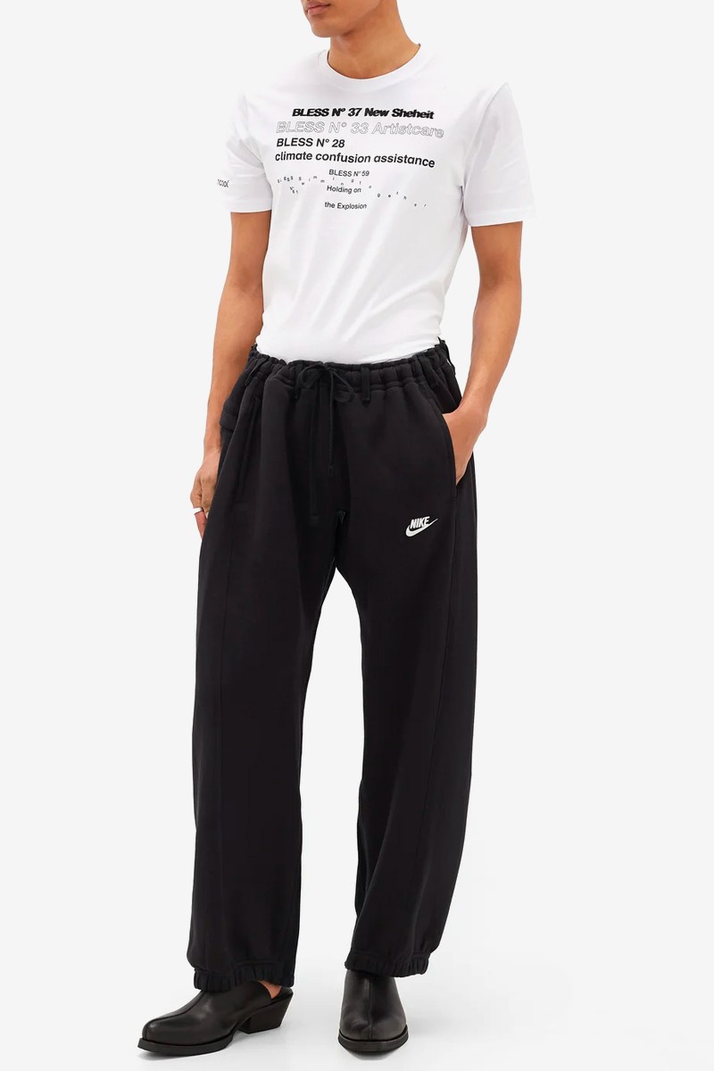 来自欧洲的 BLESS 擅长探索物品的艺术价值,将最终产品以新颖的形式呈现,早在去年, BLESS 便使用过 Nike 的棉裤和 Levi’s 的牛仔裤打造一款实验意味相当浓厚的混血裤款。今回 BLESS 延续此一概念,分别将同为米色与全黑的 Nike 运动棉裤与 Levi’s 回收再制的牛仔裤拼接,制作出引人注目且著用舒适的特色裤款。 目前两款由 BLESS 打造的 Nike x Levi’s「丹宁运动棉裤」都已经在 MATCHESFASHION 正式贩售,售价约为 $531 美元,有兴趣的各位不妨前往入手。  |