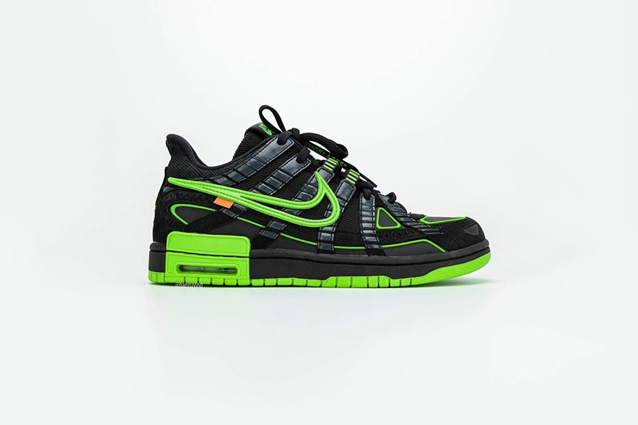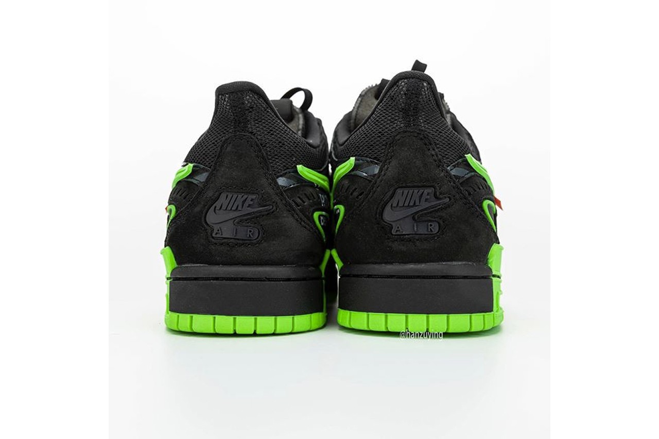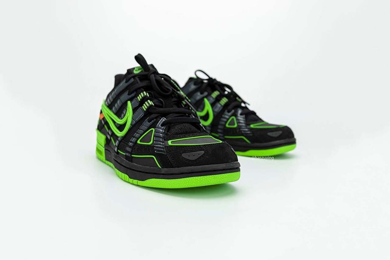 不久前,曾为大家曝光 Nike 与大热品牌 Off-White™ 疑似最新打造的联名鞋款真身 Air Rubber Dunk,造成不少议论。今番知名情报帐号 @hanzuying 曝光全新高清图辑,该鞋跑鞋与滑板鞋设计的混血感,同样延续 Virgil Abloh 擅长的异材质设计美学,透过黑色主调衬托有如霓虹光管般的萤光绿色细节,鞋舌以「NIKE OFF」绣字做呈现,而代表 Off-White™ 的橘色标签亦保留于内,据传将一举推出三款新色。 Off-White™ x Nike Air Rubber Dunk 最新联名鞋款预计于 2020 年春季正式登场。  |