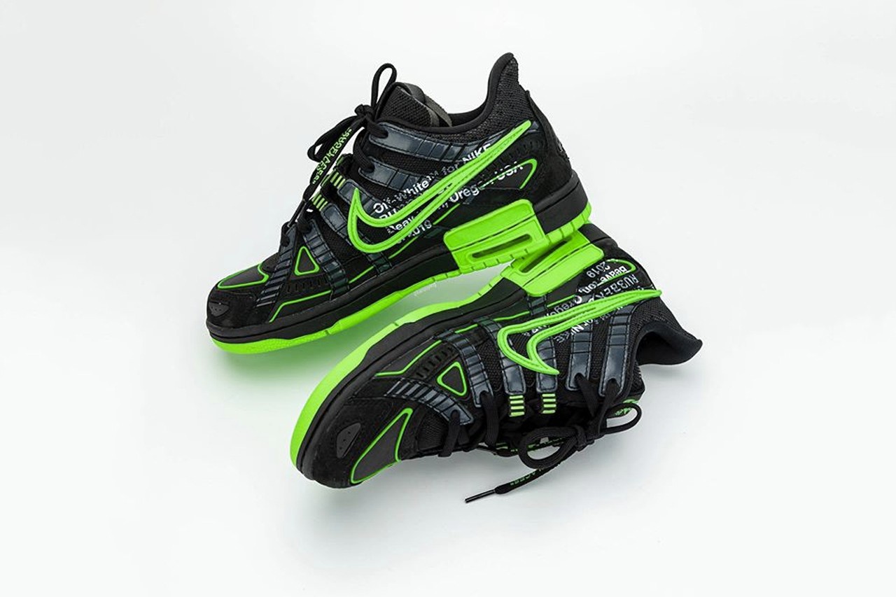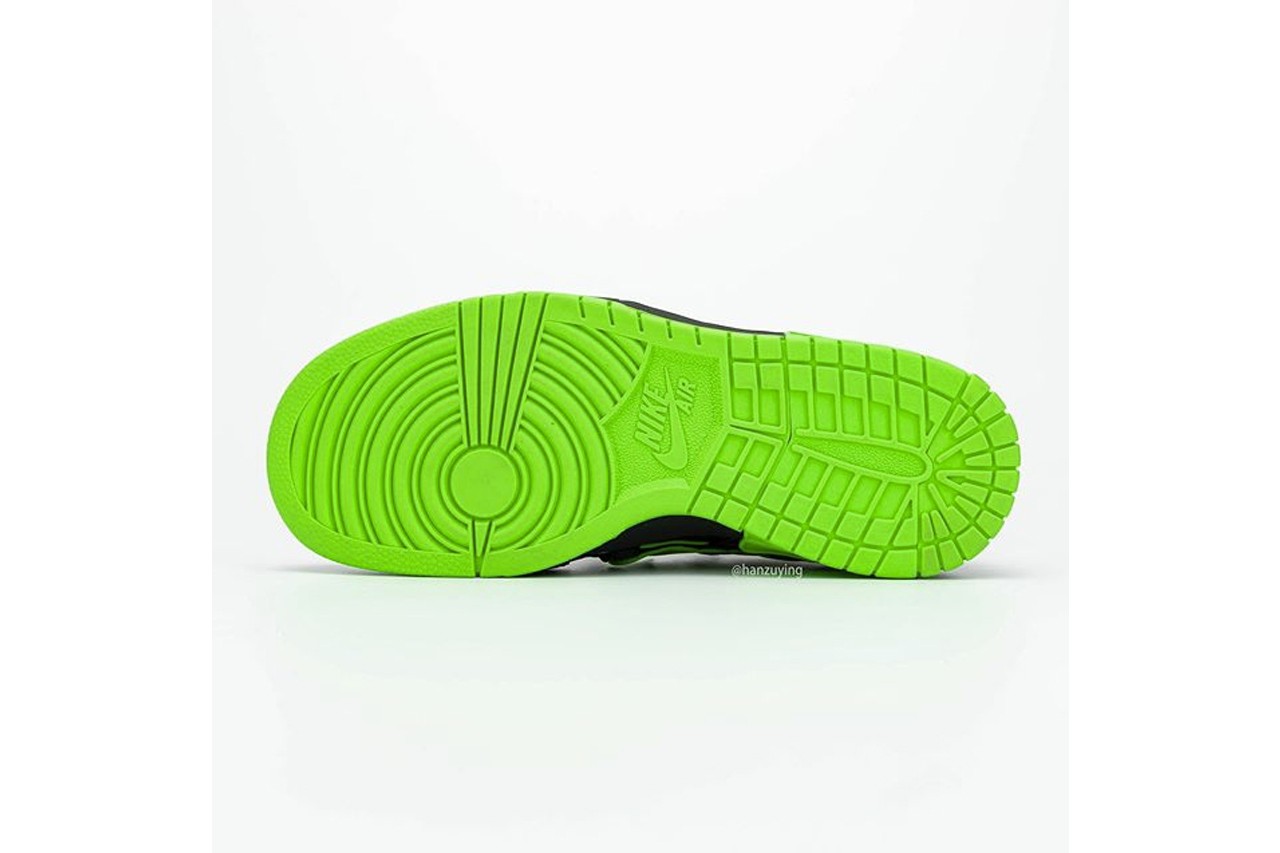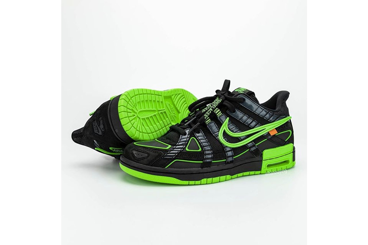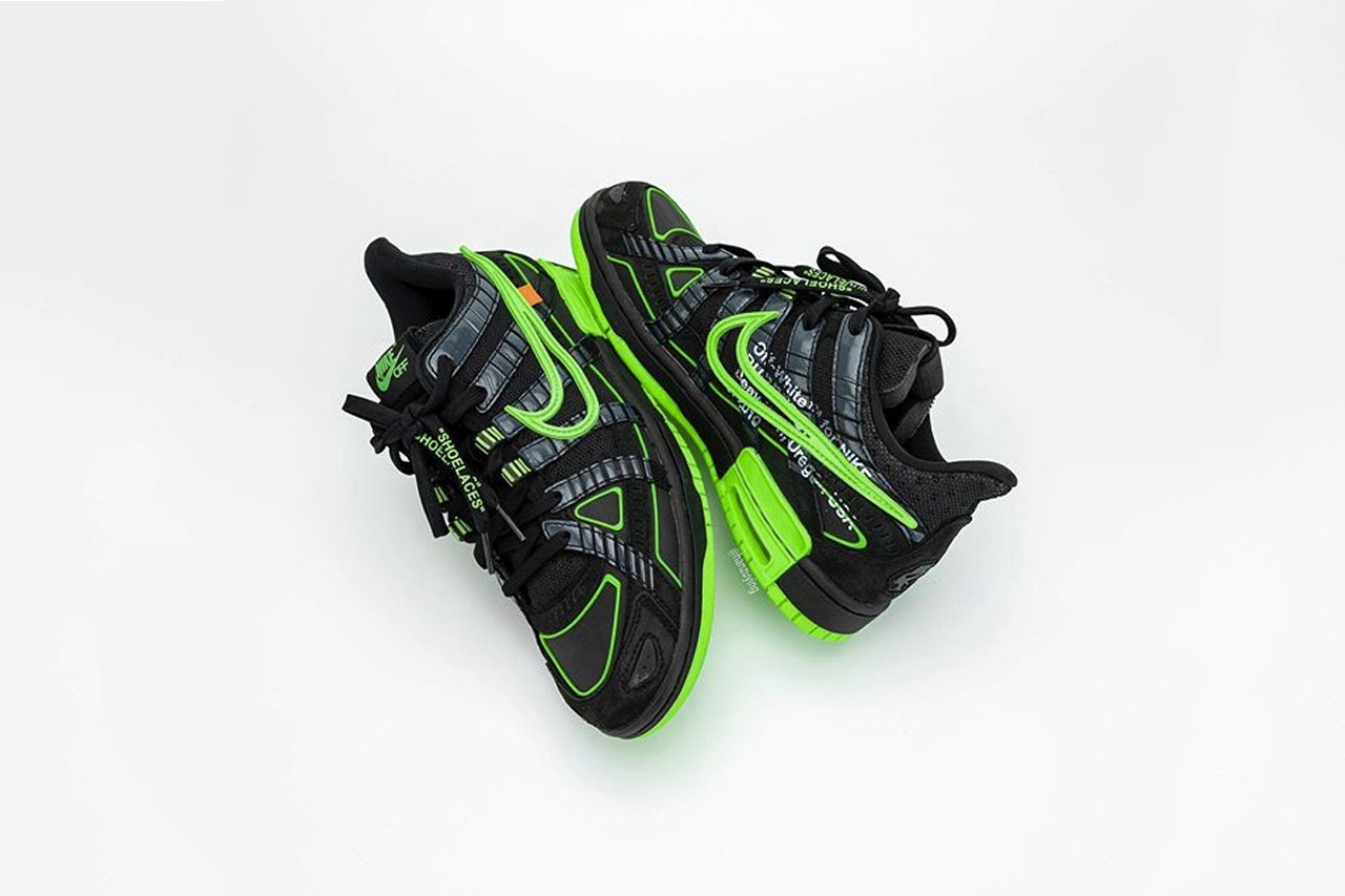 不久前,曾为大家曝光 Nike 与大热品牌 Off-White™ 疑似最新打造的联名鞋款真身 Air Rubber Dunk,造成不少议论。今番知名情报帐号 @hanzuying 曝光全新高清图辑,该鞋跑鞋与滑板鞋设计的混血感,同样延续 Virgil Abloh 擅长的异材质设计美学,透过黑色主调衬托有如霓虹光管般的萤光绿色细节,鞋舌以「NIKE OFF」绣字做呈现,而代表 Off-White™ 的橘色标签亦保留于内,据传将一举推出三款新色。 Off-White™ x Nike Air Rubber Dunk 最新联名鞋款预计于 2020 年春季正式登场。  |