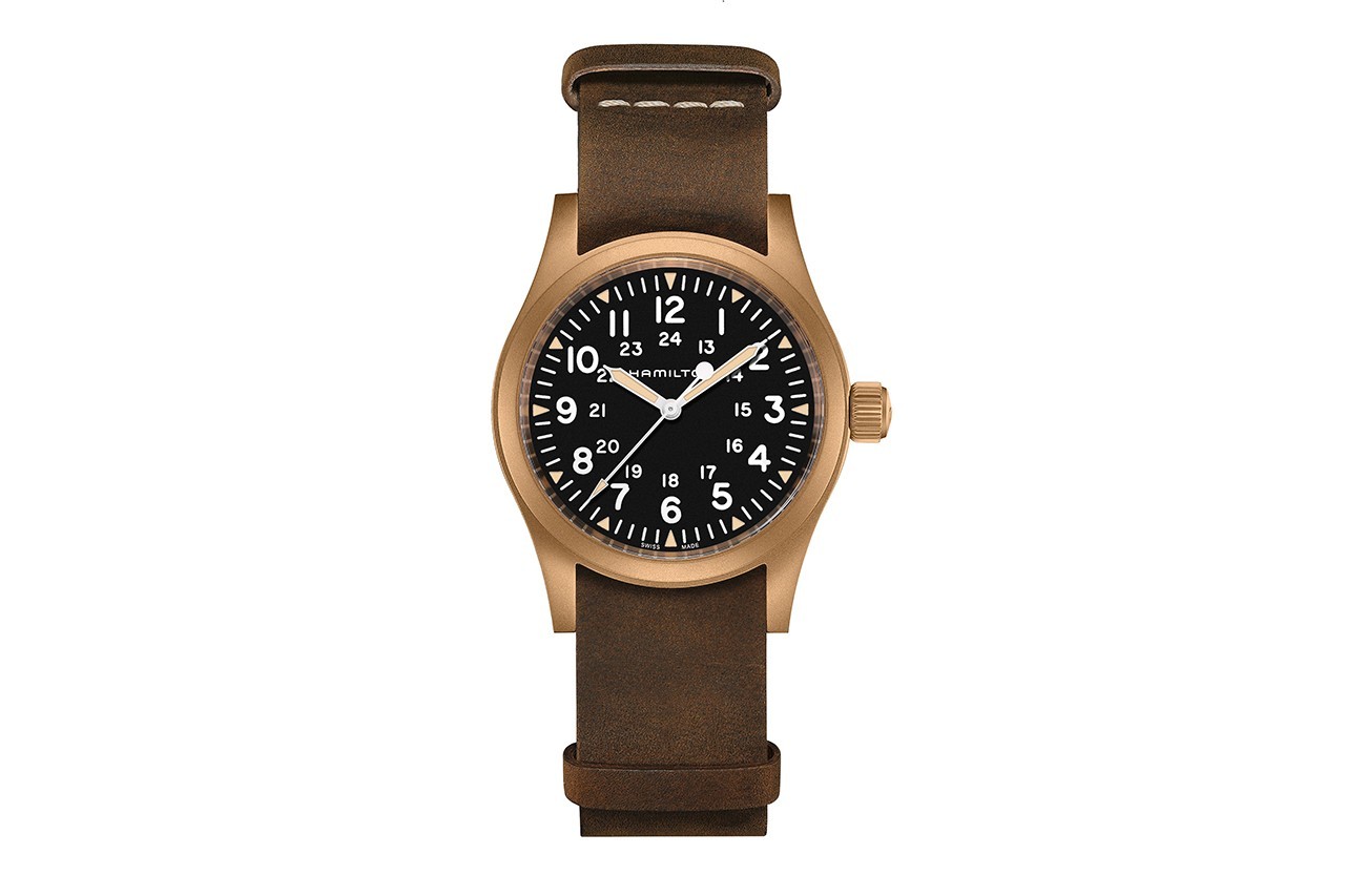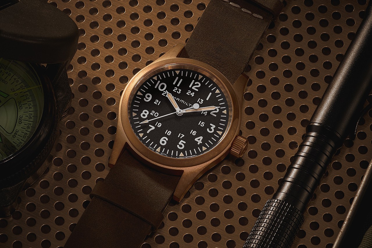 Hamilton 旗下 38mm Khaki Field Mechanical 表款最初是二战期间为同盟国军事所生产,而今回官方便重新以青铜材质带回此经典腕表,透过极其兼顾与耐用的青铜合金来制成表壳,随著岁月流逝更会呈现独特的铜绿式样,黑色表盘位置亦加入夜光涂层增添易读性,底盖部分为泰金属材质,避免与皮肤接触产生的过敏不适,提供动力的 H-50 手动上炼机芯则具备 80 小时动力储存。目前此款 Khaki Field Mechanical Bronze 也已经登陆 Hamilton 官网发售,售价 720 英镑,有兴趣的读者不妨多加留意。 |