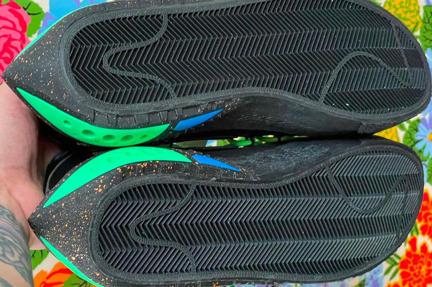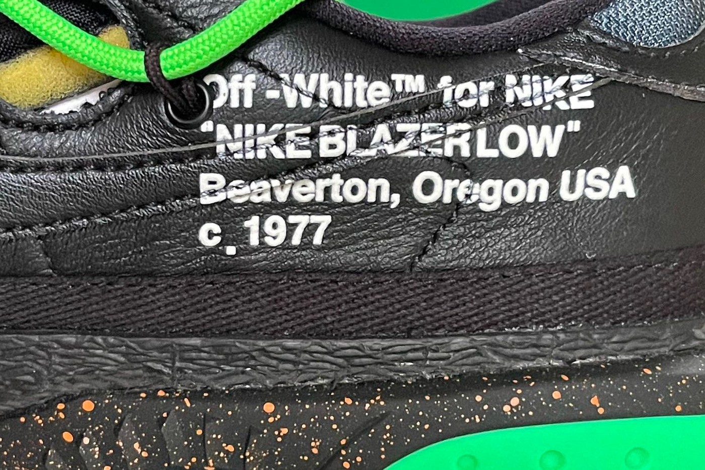 与上月首次曝光的 Off-White™ x Nike Blazer Low 全新鞋型,这回将带来鞋款完整细节近赏图辑,该鞋款预计率先推出「White/University Red」以及「Black/Green」两款配色,这回释出的「Black/Green」鞋面采用一致性黑色调,在鞋头处、鞋面中处以及后跟均附有镂空设计,鞋舌处以不收边设计将泡棉曝露在外,鞋带部分延续着 Off-White™ x Nike Dunk Low 双鞋带系统并均印有标志性 Helvetica 字体,另一特点设计是后跟处中底带有圆形篓空设计的绿色部件以及蓝色块面作为装饰,最后底下金色斑点与纯黑色基底形成对比,有兴趣的读者不妨持续留意相关消息。 |