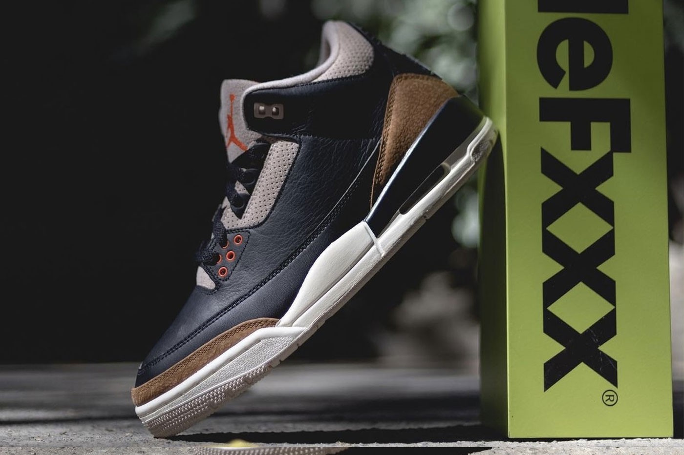 继上个月首次亮相吸引球迷的热烈关注后,Air Jordan 3 最新配色「Desert Elephant」接著便有清晰近赏图辑释出,鞋款预计作为 Jordan Brand 2022 夏季阵容之一。 「Desert Elephant」以 Black/Rush Orange/Fossil Stone/Sail 等颜色组合构成,鞋面由黑色皮革构成,常以灰色出现的标志性爆裂纹本回以棕色覆盖鞋尖与后跟护边。接著 Fossil Stone 应用在鞋舌、内衬以及鞋带孔眼上,鲜明 Rush Orange 点缀著鞋舌 Jumpman 标志与鞋带孔洞。一大特色细节包括鞋垫上的「公式」图案暗示了设计背后的灵感,下方中底由黑色和 Sail 搭配构成,最后 Fossil Stone 延伸注入到橡胶外底上。 Air Jordan 3 最新配色「Desert Elephant」将于 6 月登陆 Nike 官网贩售,售价为 $200 美元,有兴趣的读者不妨持续留意相关消息。 |