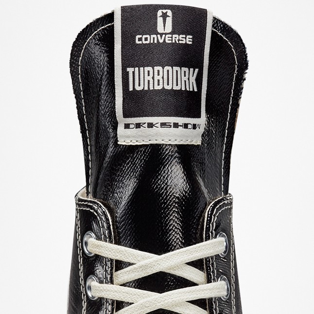 CONVERSE 与 DRKSHDW 的合作系列,此番带来全新高光漆面质感 TURBODRK Chuck 70。颠覆常规的设计除了以醒目、特殊设计的加长鞋舌,以及独特的方形橡胶鞋头继续拓展一切可能性外,同时使用了光亮漆面丹宁,突破经典帆布质感鞋面,打造你无法忽视的高光作品。TURBODRK Chuck 70 延续了 Rick Owens 对经典鞋型重塑的实践,以及他对帆布鞋扭曲重塑的独特选择,并带来黑色高帮和银色低帮两款全新鞋型,以及黑色和鹈鹕色两款配色的多用途迷你挎包。
