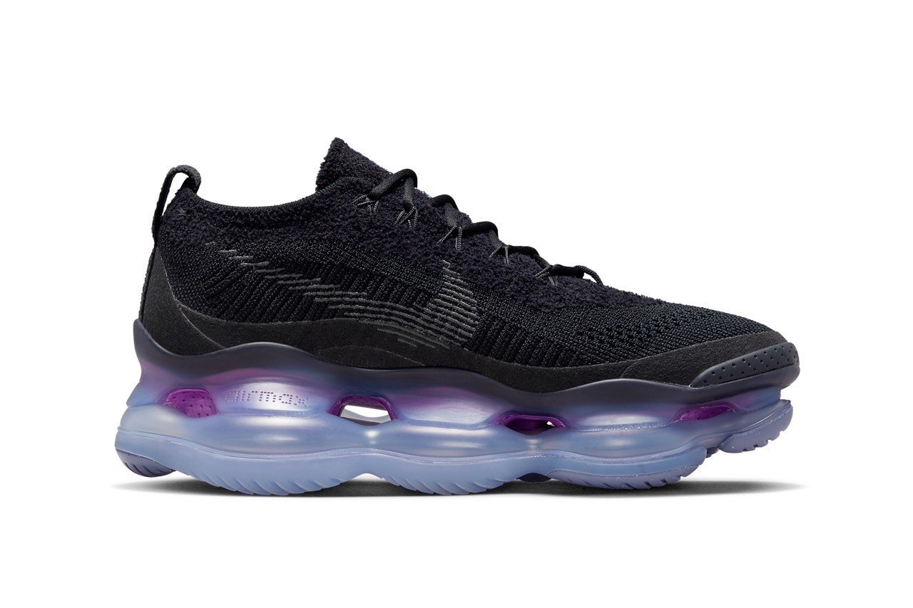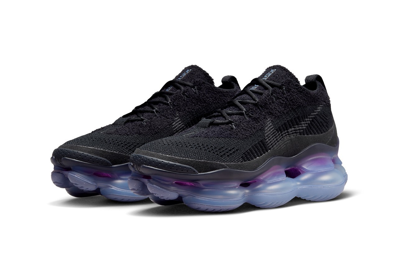 Nike Air Max 家族最新成员 Air Max Scorpion 在去年底首次亮相后,今回总算继续迎来第 2 款配色 Black 推出,全鞋设计上最大亮点自然是全掌 Air Max 气垫,除了外型抢眼之外,亦提供舒适的缓震脚感,蓝紫渐层色调亦令人印象深刻,最后则是搭配黑色的一体式 Flyknit 编织鞋面。目前 Nike 尚未公开此鞋款确切发布资讯,不过按照惯例,随着官方图辑的公开,很快就能看到正式上架,预计会在今年晚些时候到来,有兴趣的读者不妨多加留意。 |